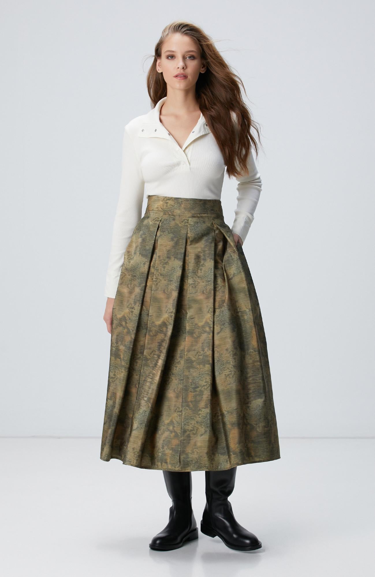 • Açıklama : %100 Polyester;Regular Fit; Normal Bel; Cepsiz; Desenli; N-Tech Fermuarlı Midi Etek