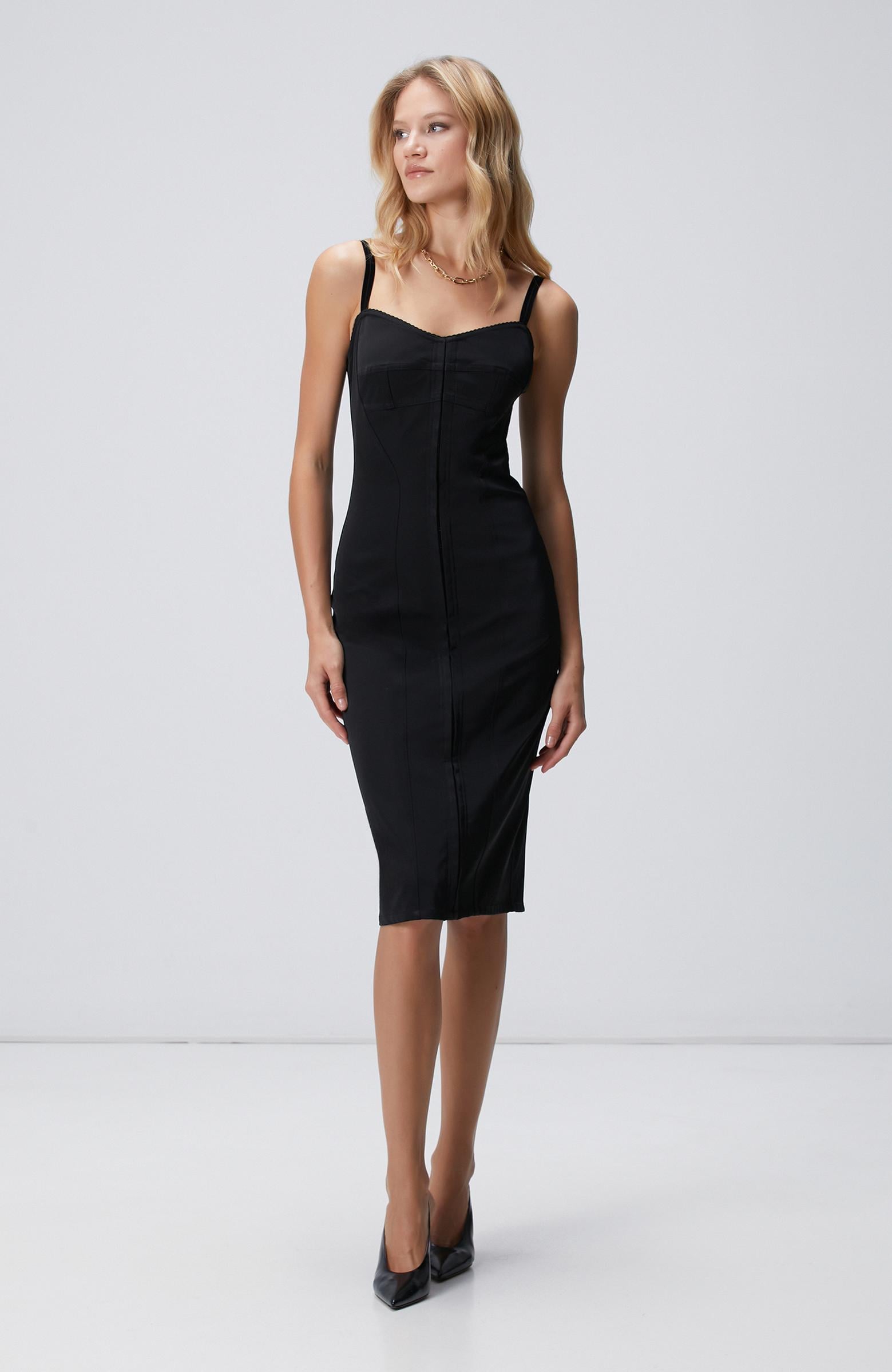 Network Kadın Siyah Askılı Midi Korse Elbise