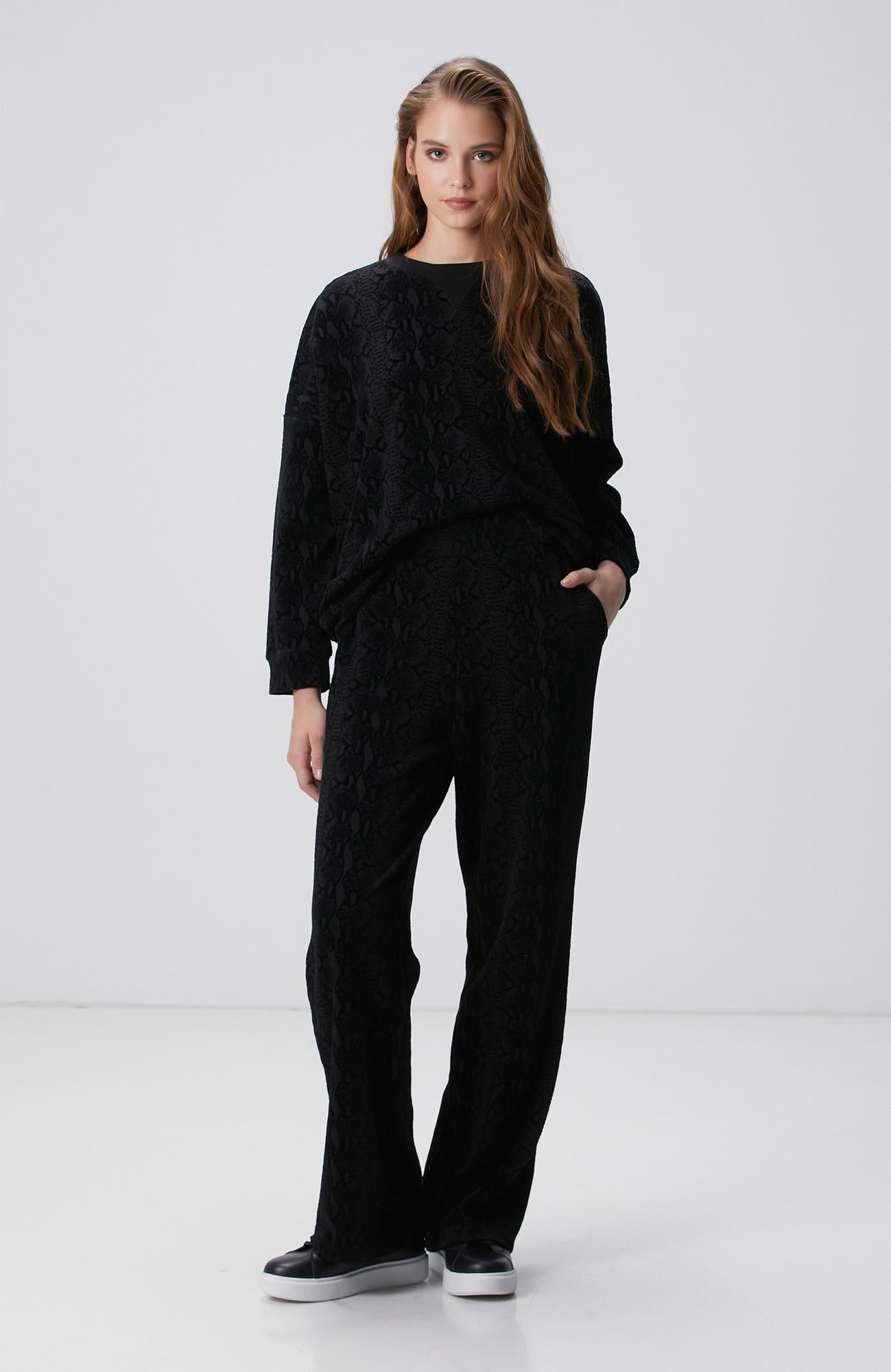 Açıklama : %78 Viscose;%18 Polyester;%4 Elastan;Regular Fit; Normal Bel; Bol Paça; Flok Baskılı Eşofman; Cepli