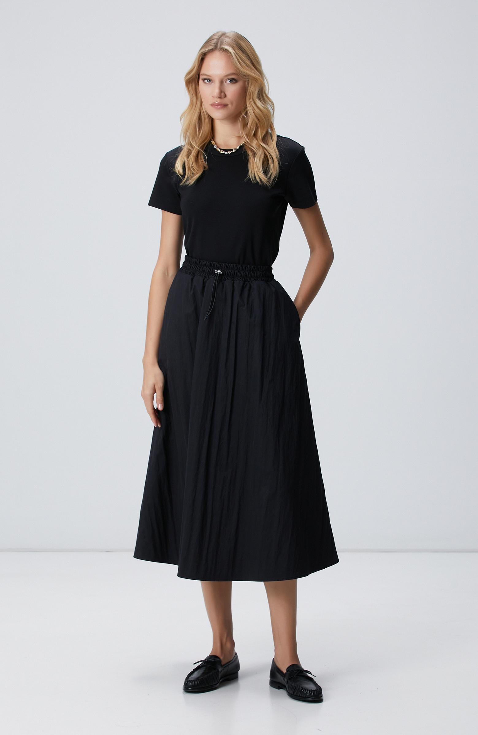 Network Kadın Siyah Beli Büzgülü Lastikli Diz Altı Etek
