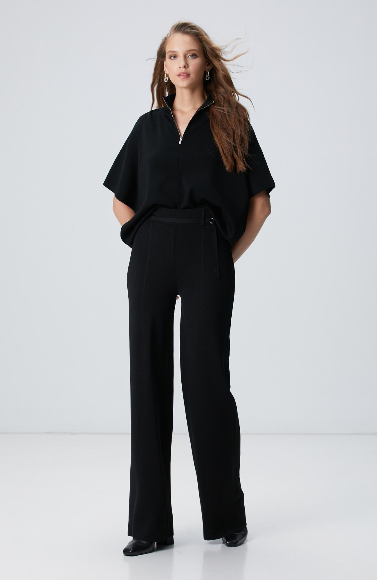 Açıklama : %65 Viscose;%35 Polyamid;Regular Fit; Normal Bel; Bol Paça; Cepsiz; Bol Form Triko Pantolon