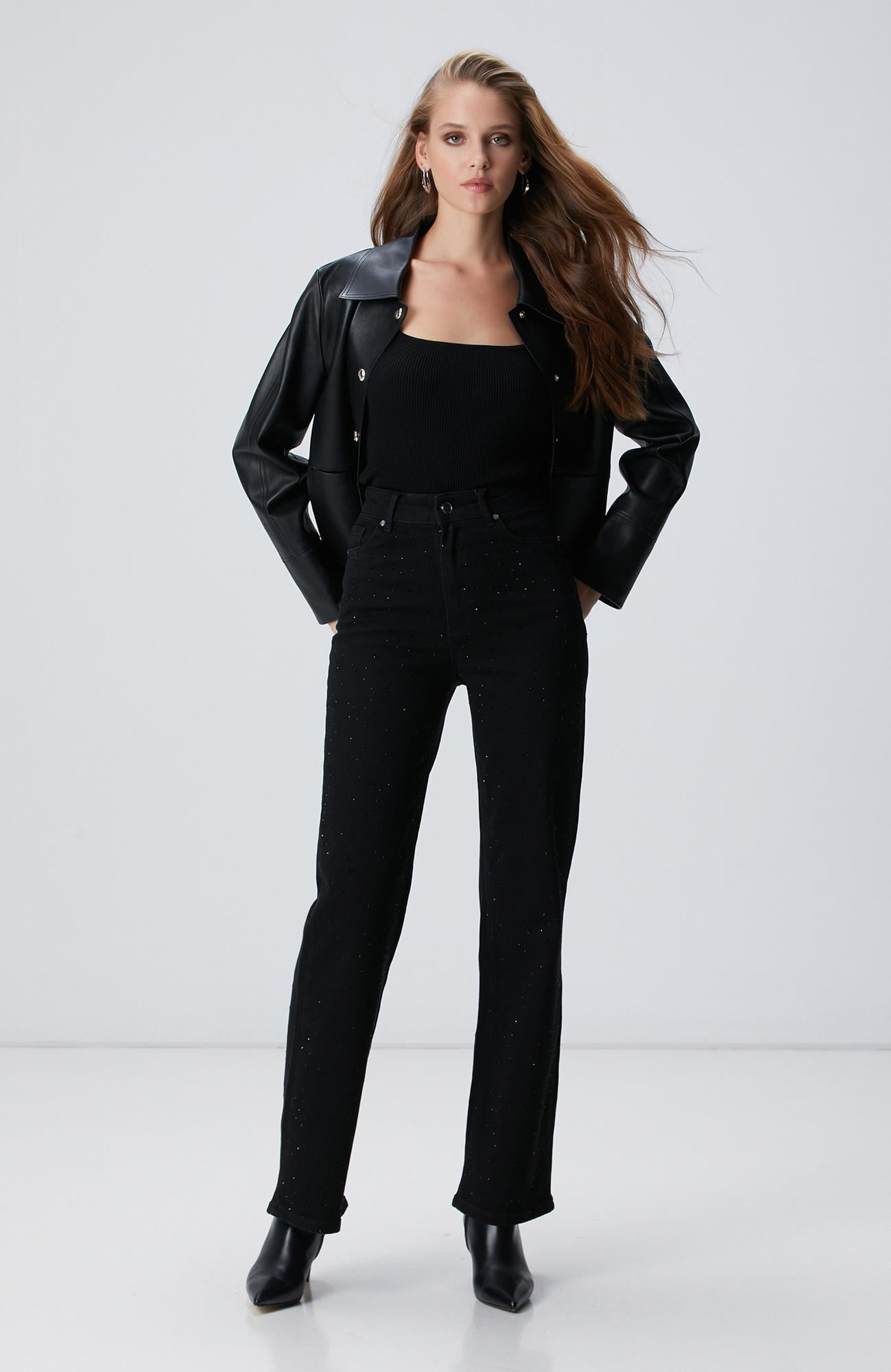Açıklama : %98 Pamuk;%2 Elastan;Basic Fit; Normal Bel; Geniş Paça; Denim Pantolon; Taşlı; 5 Cepli