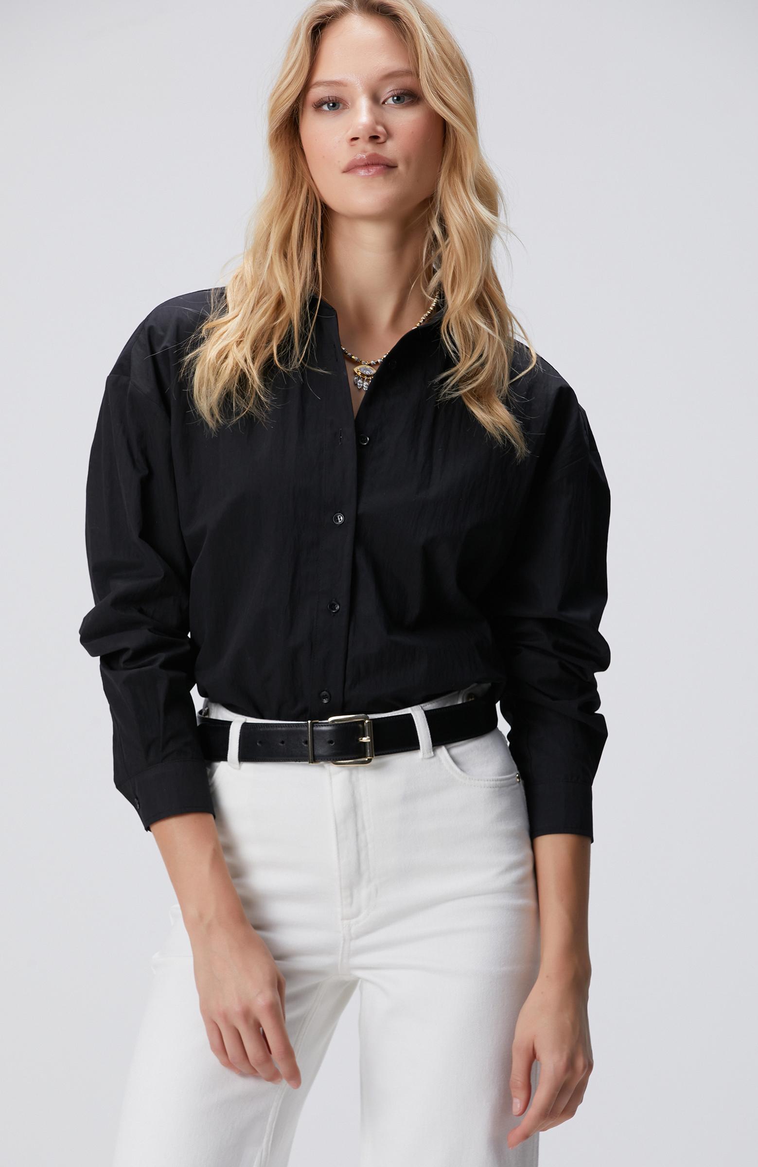 Açıklama : %57 Polyester;%43 Polyamid;Oversize Fit; Gömlek Yaka; Uzun Kol Gömlek