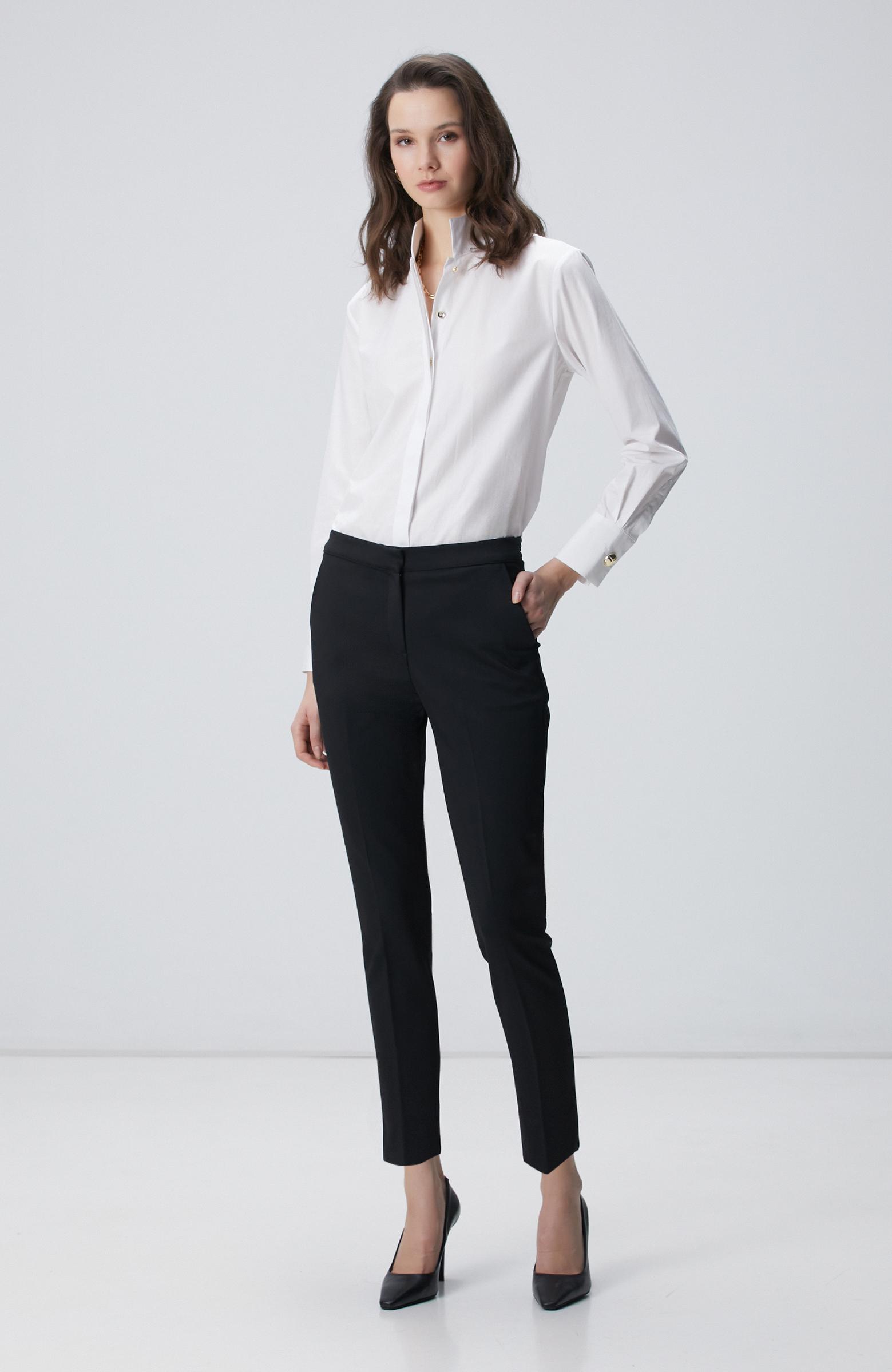 Açıklama : %53 Polyester;%44 Pamuk;%3 Elastan;Slim Fit; Yüksek Bel; Kemeri Lastik Detaylı Pantolon; Dar Paça; Yan Cepli