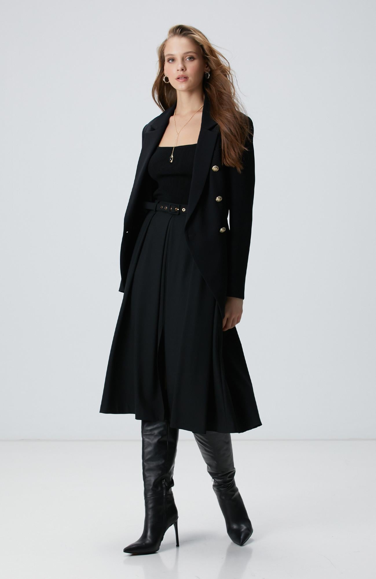 Network Kadın Siyah Midi Boy Pileli Etek