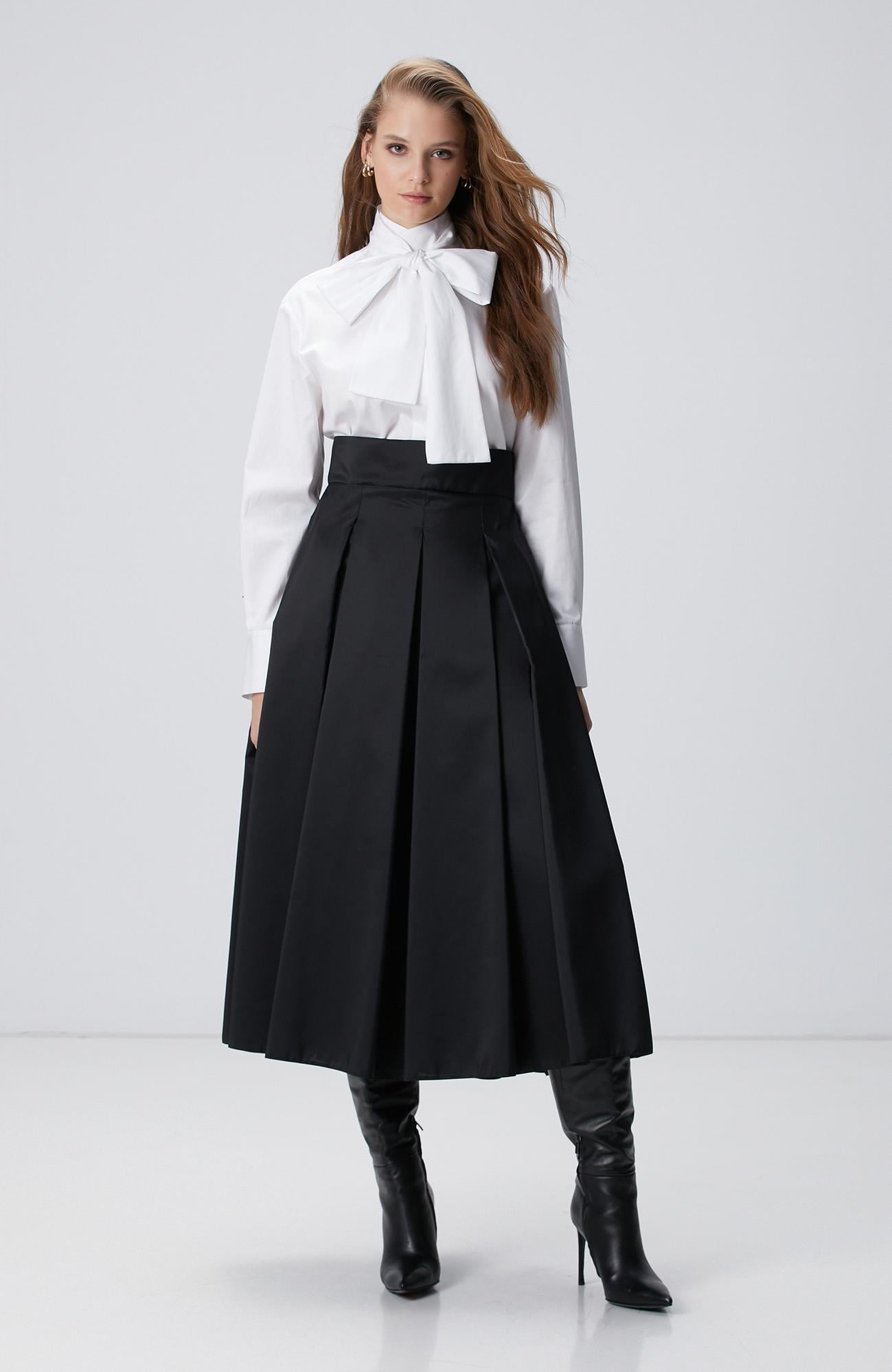 • Açıklama : %100 Polyester;Yüksek Bel; Pileli; Saten Etek; Midi Boy; Cepli