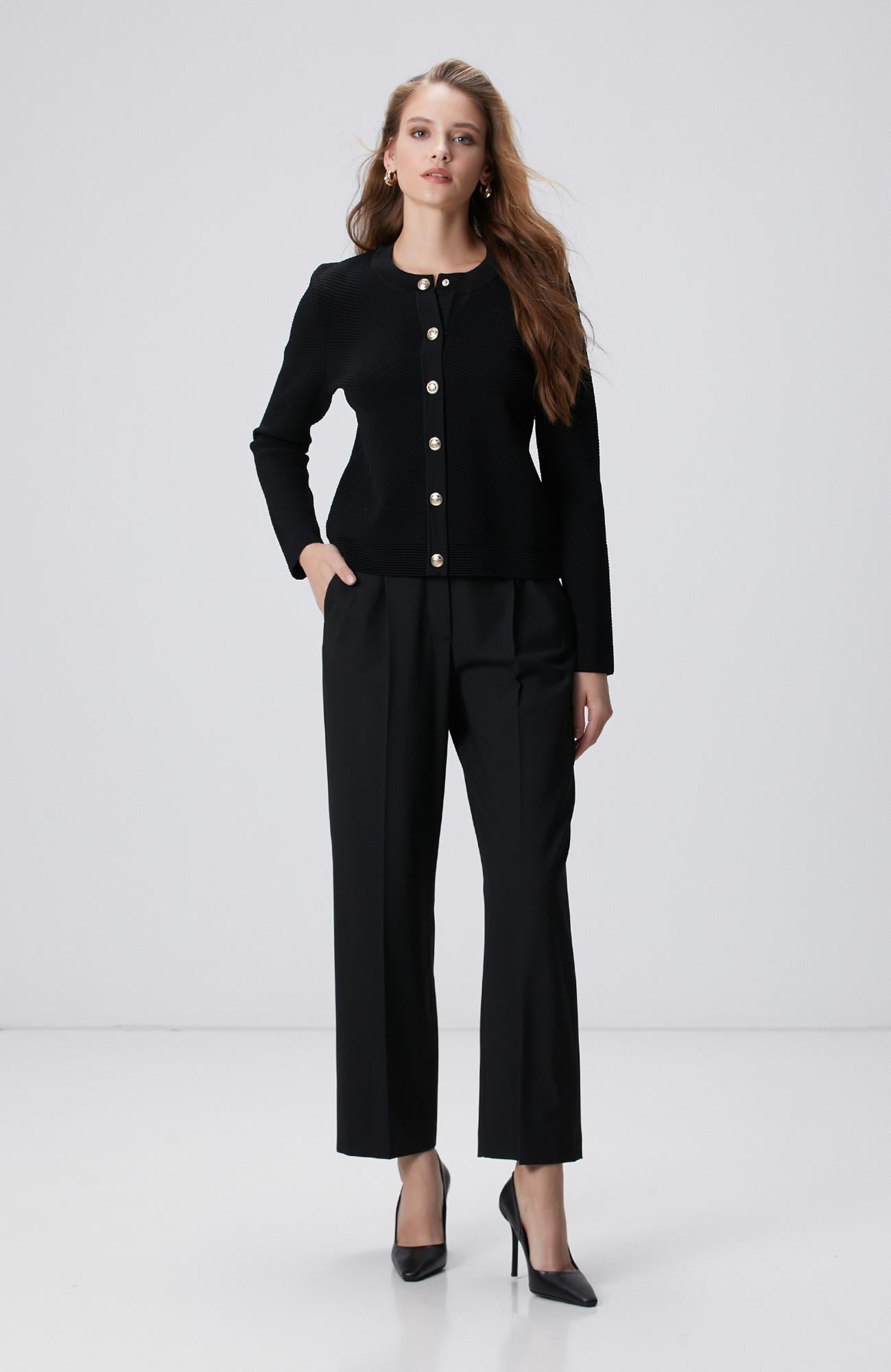 Açıklama : %48 Viscose;%48 Polyester;%4 Elastan;Regular Fit; Yüksek Bel; Düz Paça; Pileli Pantolon; Yan Cepli