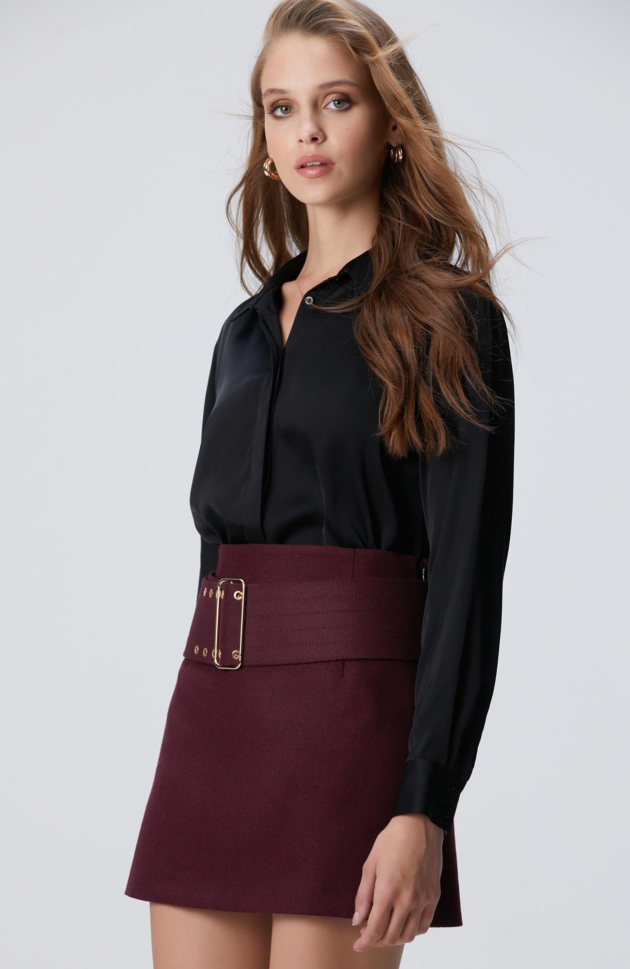 Network Kadın Siyah Saten Gömlek
