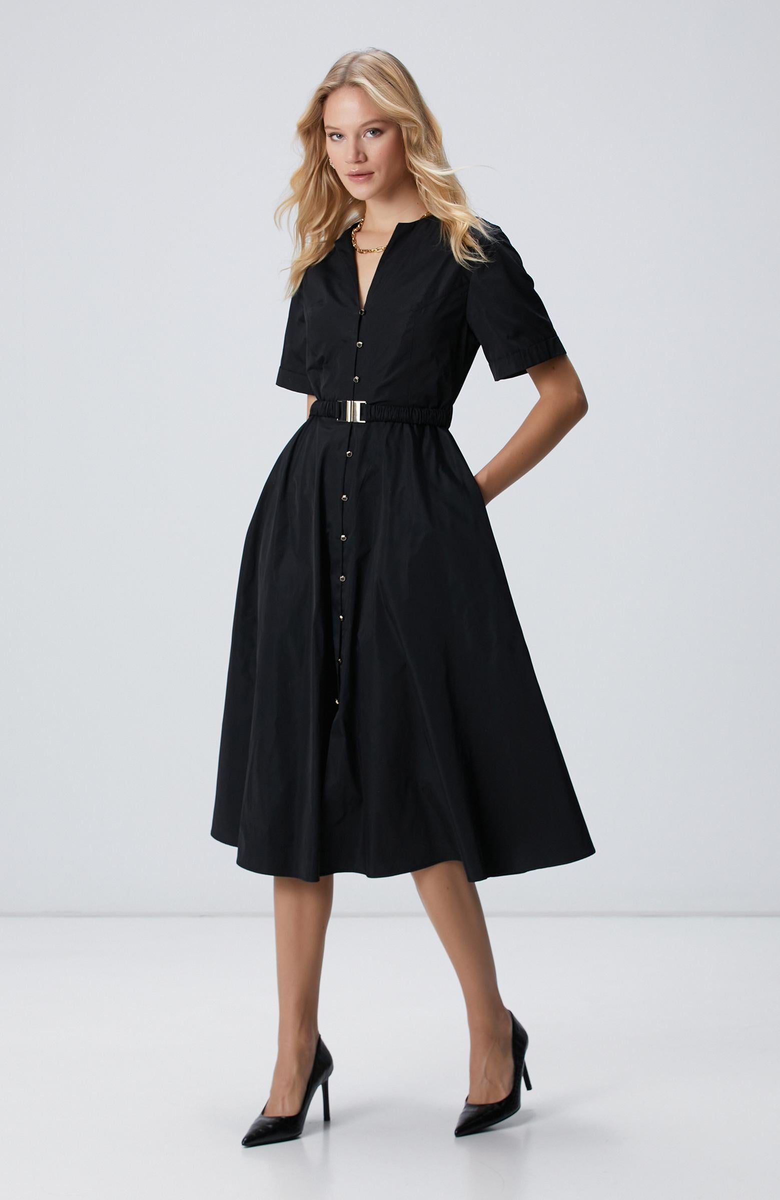 Açıklama : %100 Polyester;Regular Fit; Bisiklet Yaka; Cepli; Tafta Elbise