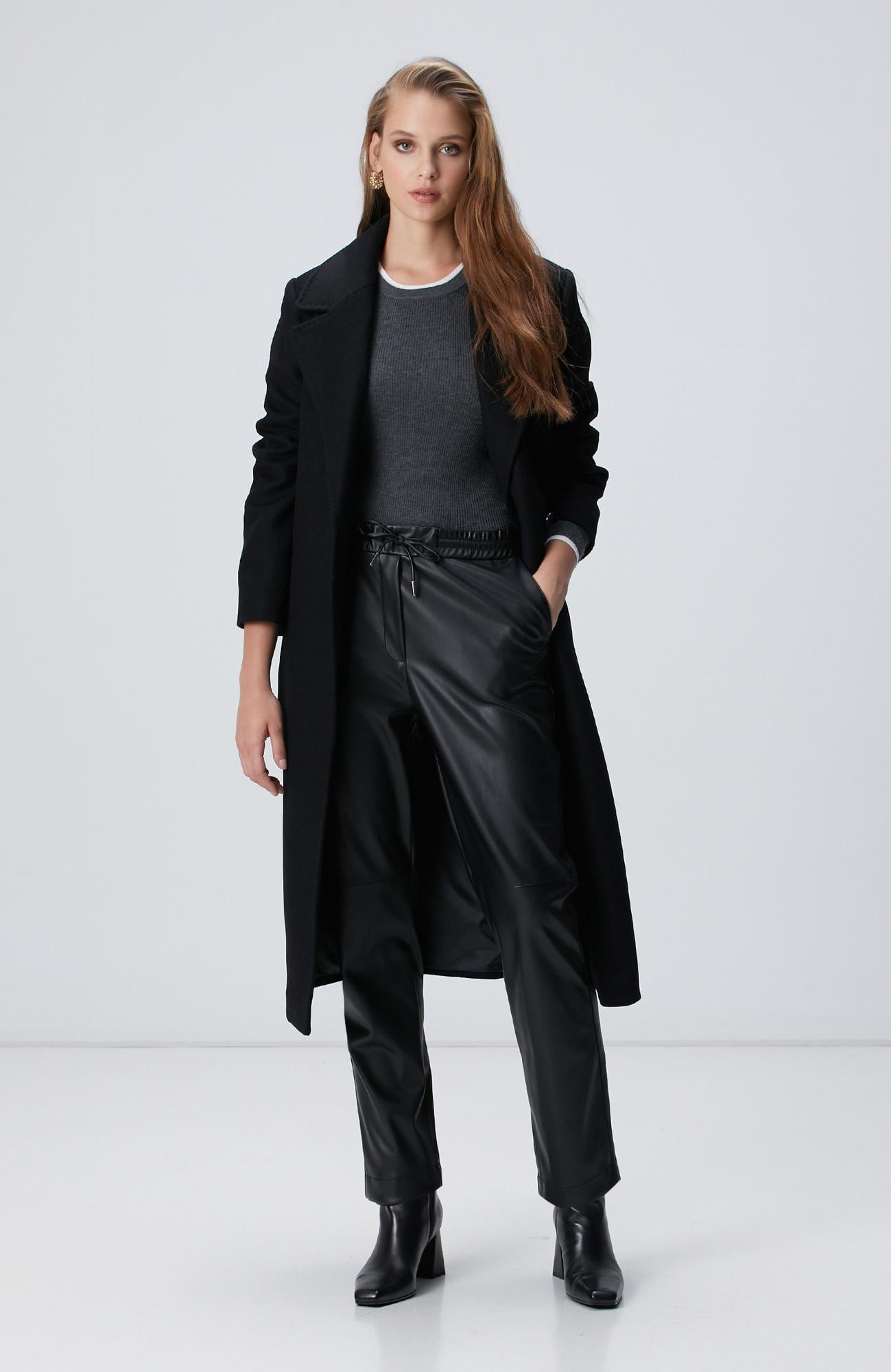 Açıklama : %50 Polyester;%50 Poliüretan;Regular Fit; Yüksek Bel; Düz Paça; Cepli; Vegan Deri Pantolon