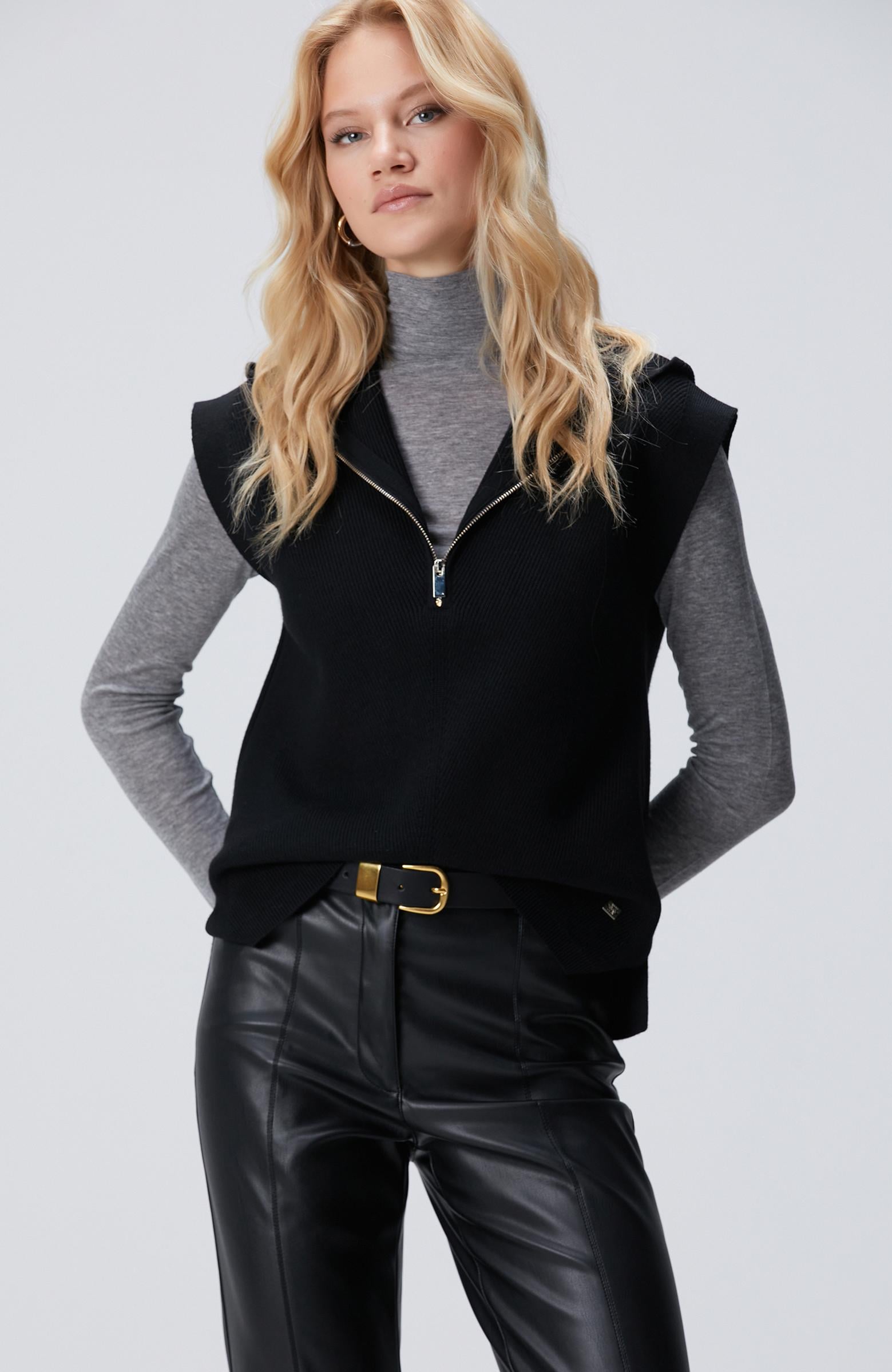 Network Kadın Siyah Verev Desen Örgü Kapüşonlu Kolsuz Kazak
