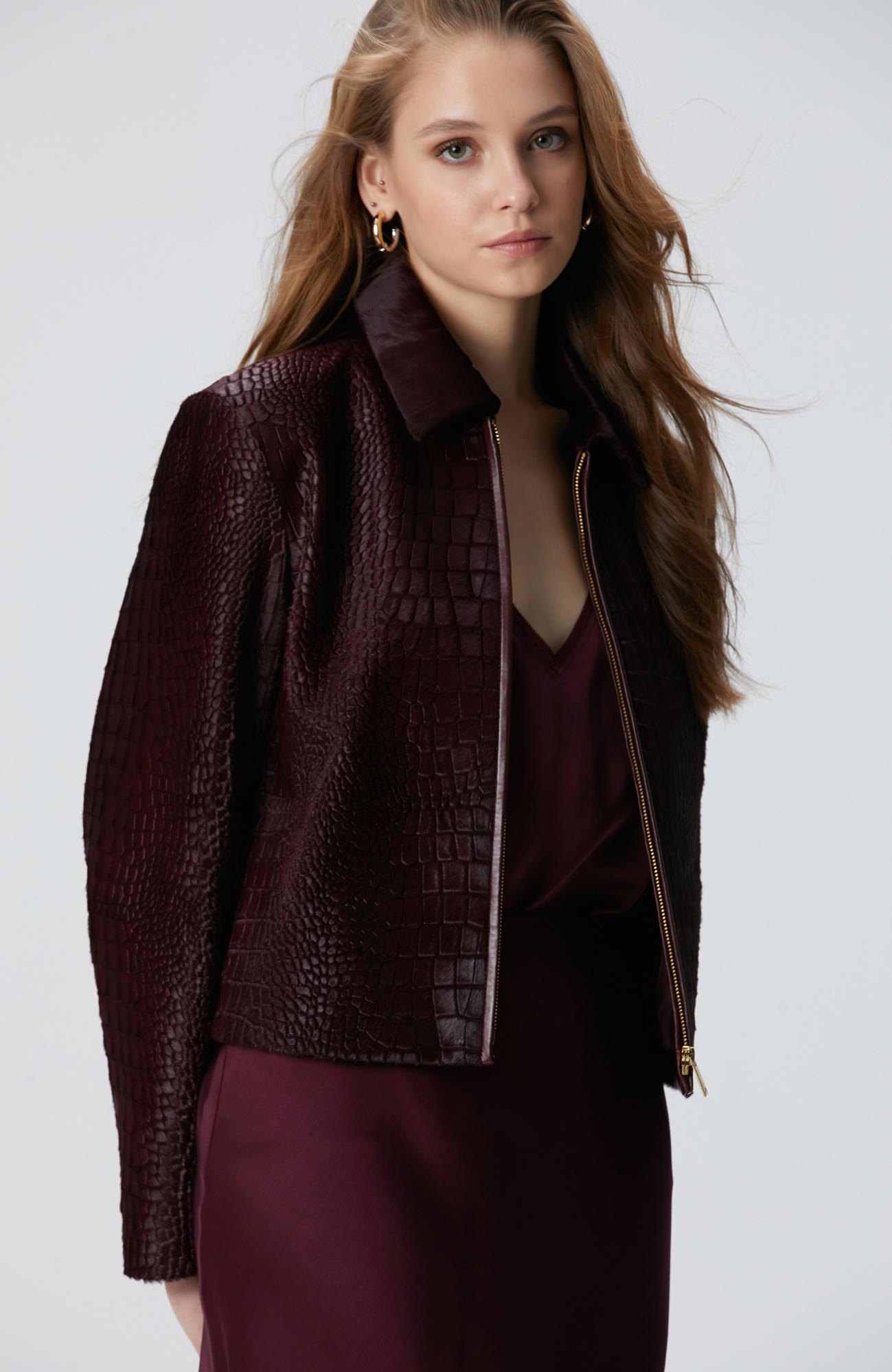 Network Kadın Vişne Limited Kroko Desenli Deri Mont