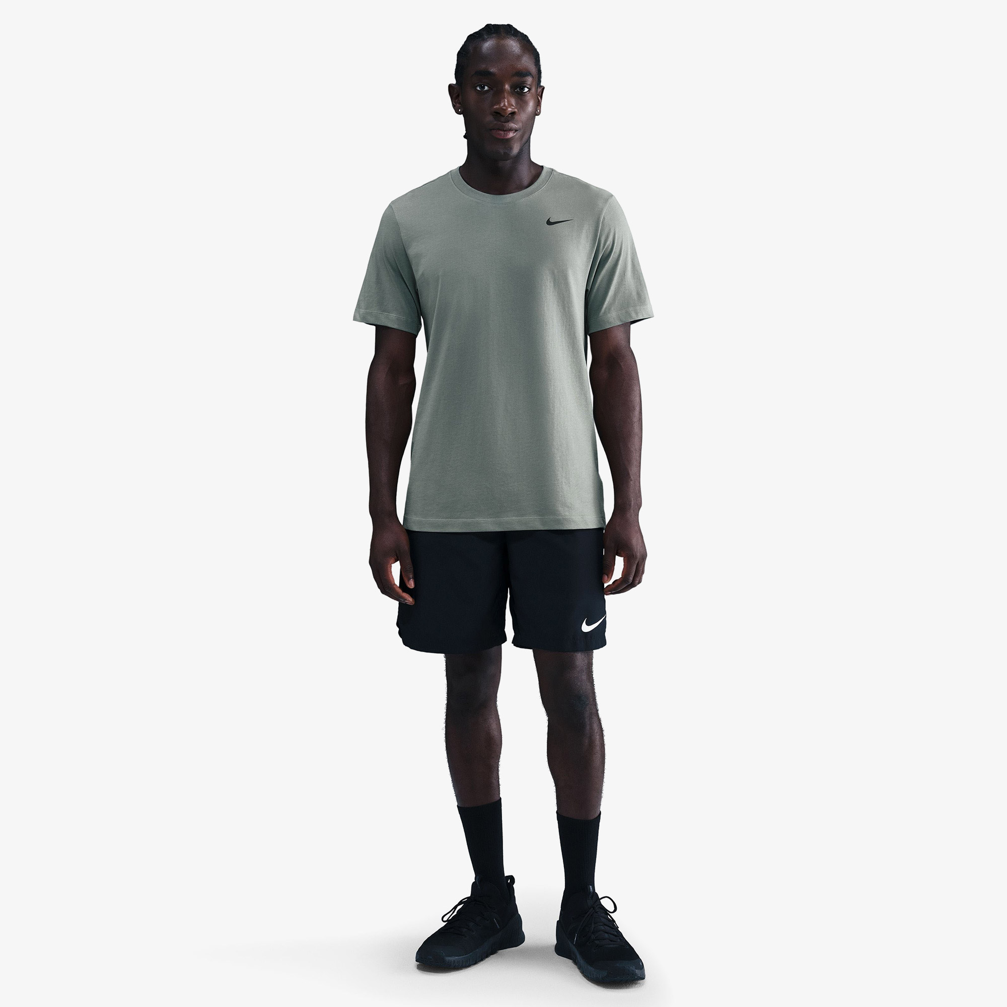 Nike Dri-Fit Crew Solid Erkek Yeşil T-Shirt, özel Dri-FIT teknolojisiyle antrenman boyunca kuru ve rahat kalmanı sağlar.