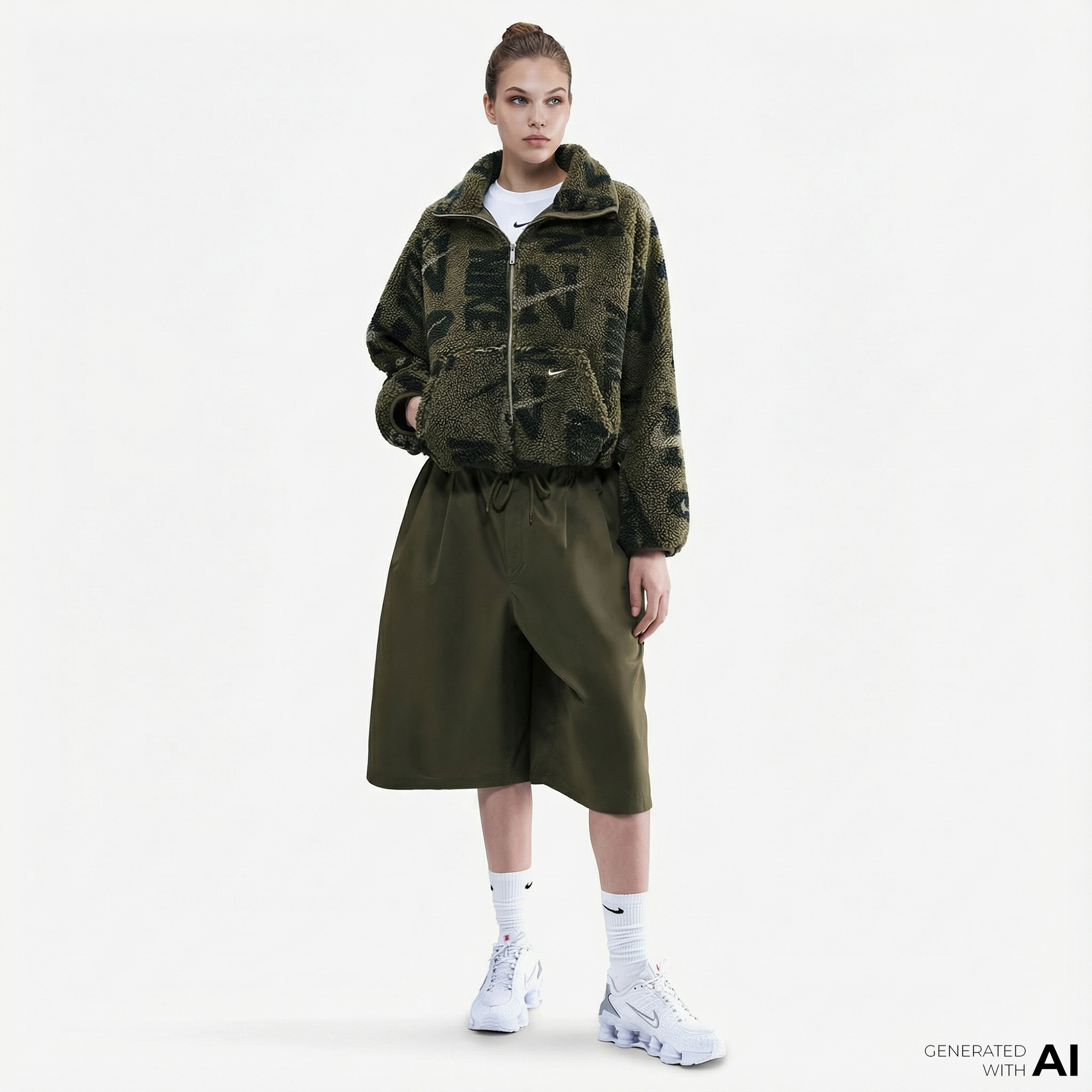 Nike Sportswear Street Sherpa Kadın Haki Ceket, uzun tüylü fleece yapısıyla seni soğuk havalarda bile sıcacık tutar.