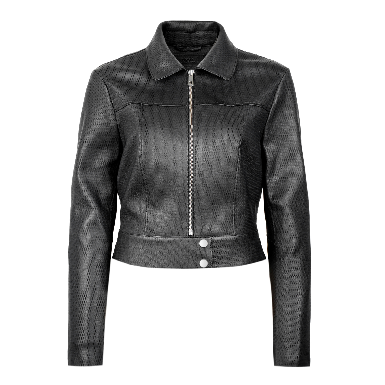 %100 Stretch koyun derisi, önden metal fermuar kapamalıdır. Esnek kumaş lamineli deri özelliği vardır. Deri üzerine özel olarak mat efekti verilmiştir. Ürün %100 koyun derisinden olup, astarsız çalışılmıştır. Bu ürün, et endüstrisinin yan ürünü olarak elde edilen ve sürdürülebilir yöntemler ile Leather Working Group Altın sertifikalı Desa tesislerinde tabaklanan deriler kullanılarak üretilmiştir.-%100 Stretch koyun derisi, önden metal fermuar kapamalıdır. Esnek kumaş lamineli deri özelliği vardır. Deri üzerine özel olarak mat efekti verilmiştir. Ürün %100 koyun derisinden olup, astarsız çalışılmıştır. Bu ürün, et endüstrisinin yan ürünü olarak elde edilen ve sürdürülebilir yöntemler ile Leather Working Group Altın sertifikalı Desa tesislerinde tabaklanan deriler kullanılarak üretilmiştir.