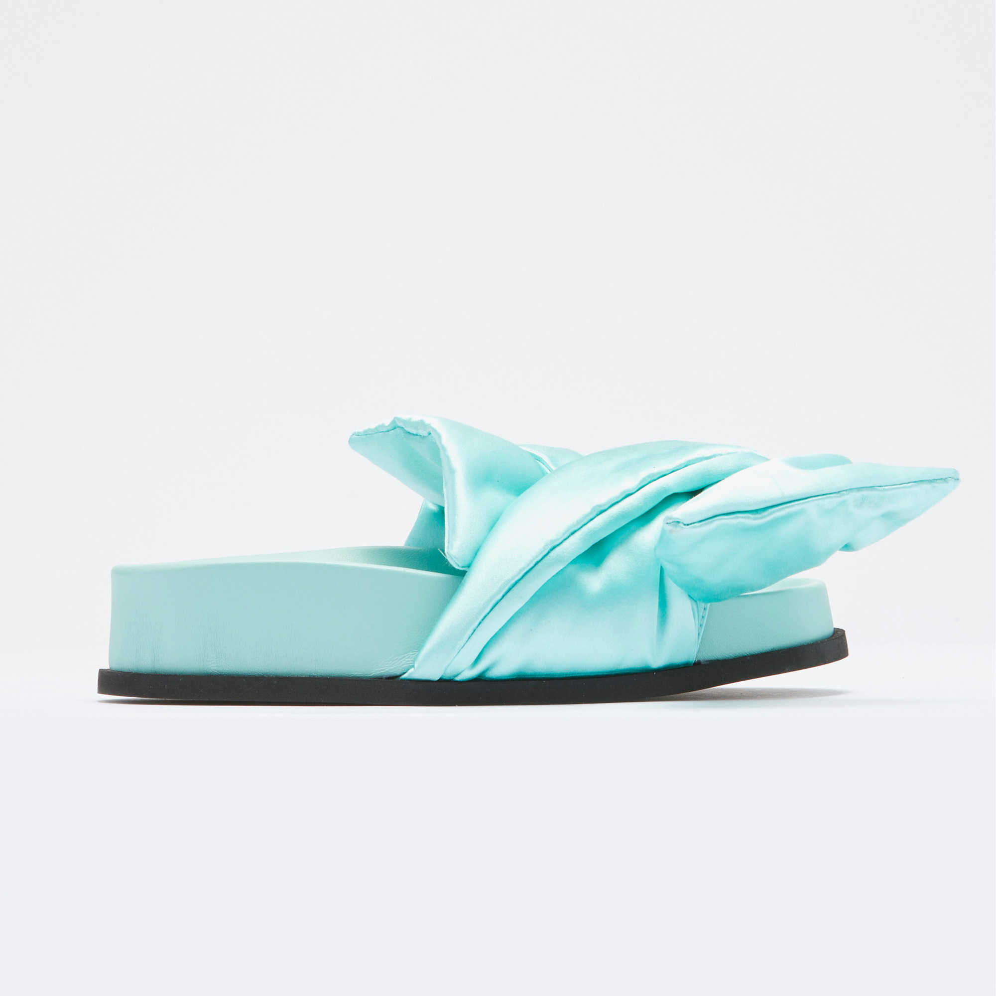 NO21 Kadın Ayakkabı modeli, zarif tasarımıyla her anına stil katmak isteyen kadınlar için mükemmel bir seçim. Parlak mint yeşili saten kumaşı ve benzersiz düğüm detaylarıyla, şıklığı konforla birleştiren bu terlik, hem gündelik hem de özel günlerde göz alıcı bir görünüm sağlar.