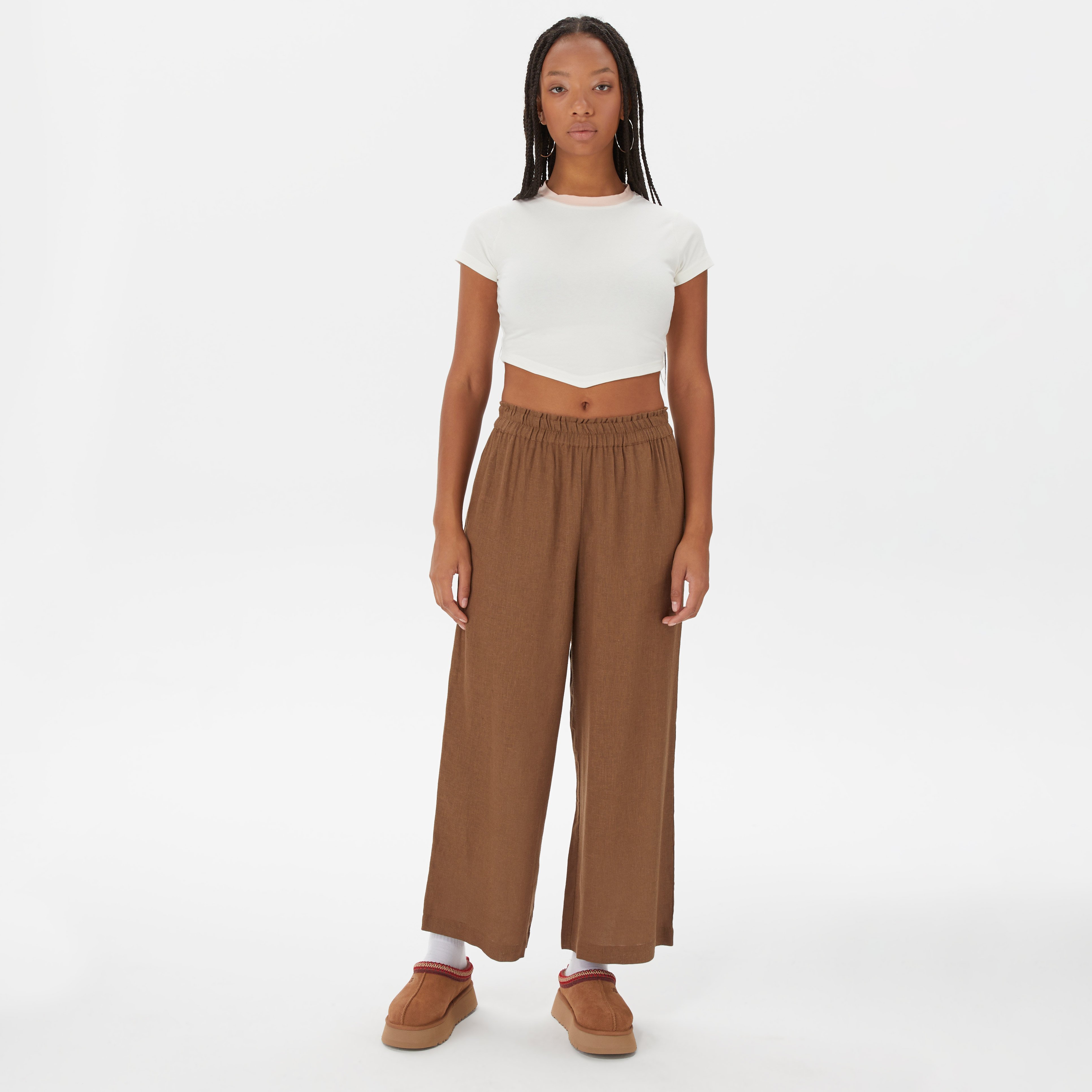 Only Onltokyo Yüksek Belli Linen Blend Kadın Kahverengi Pantolon