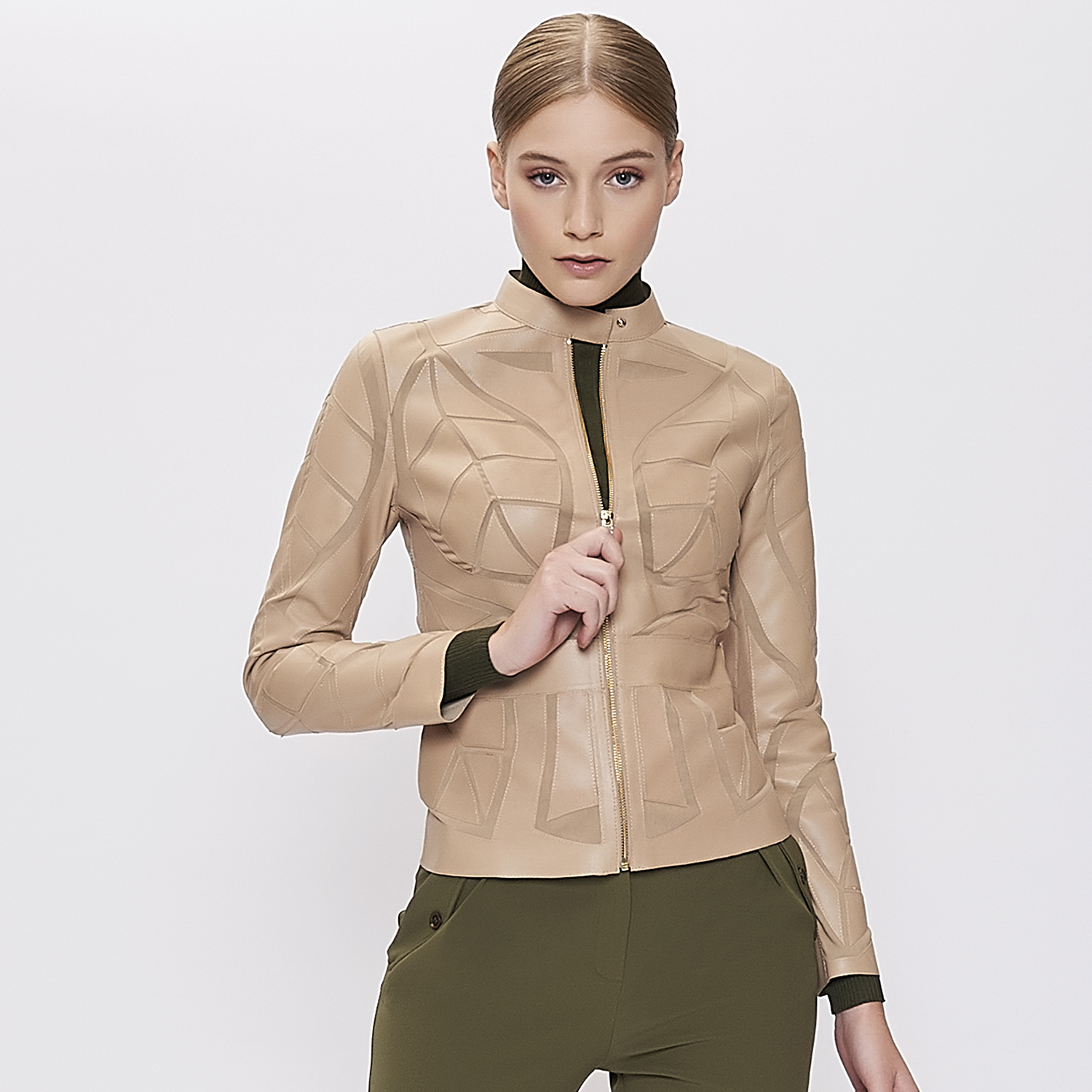 %100 Koyun derisinden üretilmiştir.-Kadın vücut anatomisini vurgulamak için; esneyen tül ile desteği ile bedene yerleştirilen yaprak desenindeki deriler sayesinde, hem rahat hem de fit bir görünüm kazandırılmış ve tül laminasyon çalışması yapılmıştır.