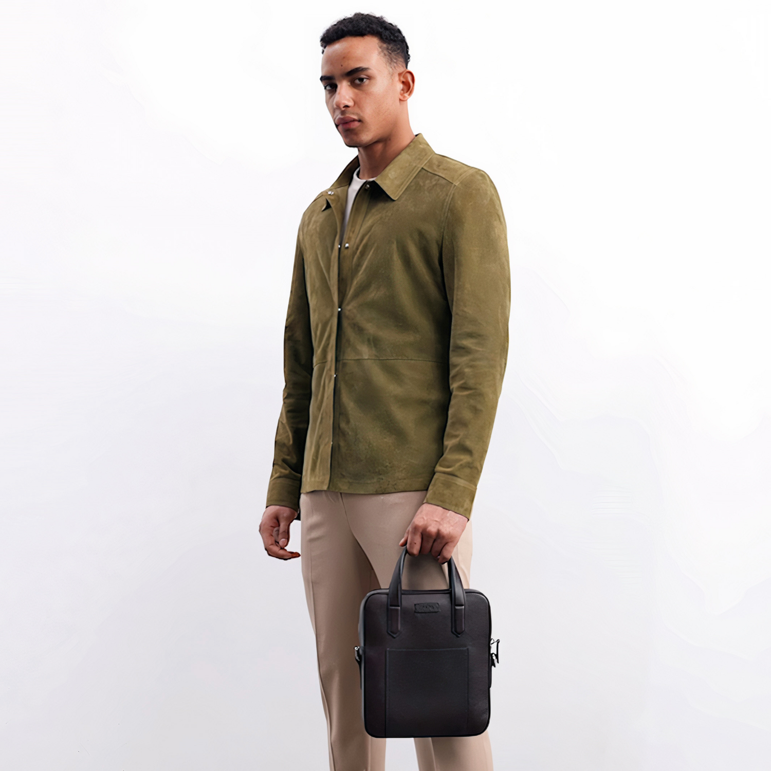 Erkek yakalı süet blazer gömlek.
