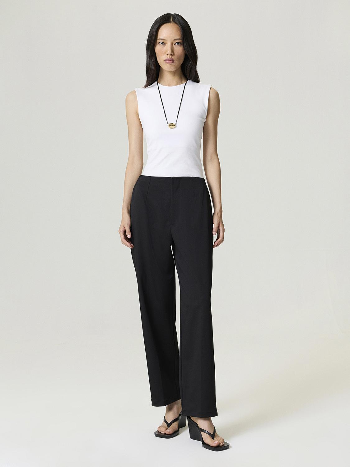 Klasik çizgileri modern bir yorumla buluşturan bu pantolon, dokuma kumaşı ve özenli dikiş detaylarıyla zamansız bir şıklık sunuyor. Normal bel tasarımı ve pens detaylarıyla vücuda zarif bir form kazandırırken, kanca ve fermuar kapaması tasarımı tamamlayan şık bir bitiriş sağlıyor. Astarsız yapısı sayesinde hafif ve konforlu bir duruş sunan bu pantolon, ofis stilinden şehir şıklığına kadar her kombinde zarafetle öne çıkıyor. Model Ürün Bedeni: XS