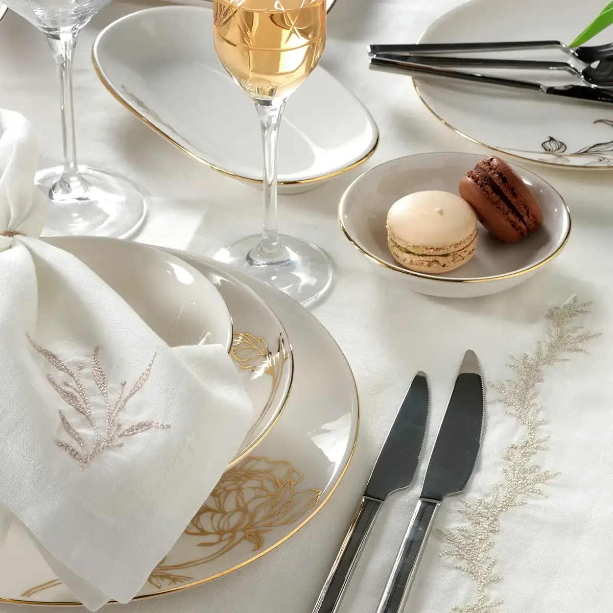 Petite 2'li Peçete, %100 keten dokusuyla doğal ve sofistike bir görünüm sunarken, beyaz renginin zamansız şıklığıyla sofralarınıza elegan bir dokunuş katıyor. Dayanıklı ve yüksek kaliteli kumaşı sayesinde hem günlük kullanıma hem de özel davetlere mükemmel uyum sağlıyor.