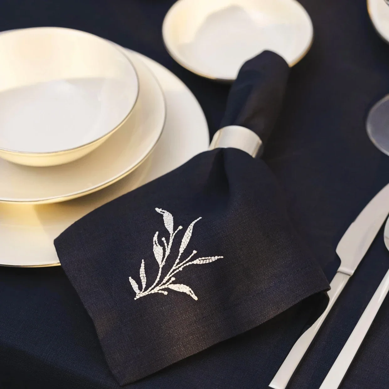 Petite 2'li Peçete, %100 keten dokusuyla doğal ve sofistike bir görünüm sunarken, lacivert renginin zamansız şıklığıyla sofralarınıza elegan bir dokunuş katıyor. Dayanıklı ve yüksek kaliteli kumaşı sayesinde hem günlük kullanıma hem de özel davetlere mükemmel uyum sağlıyor.