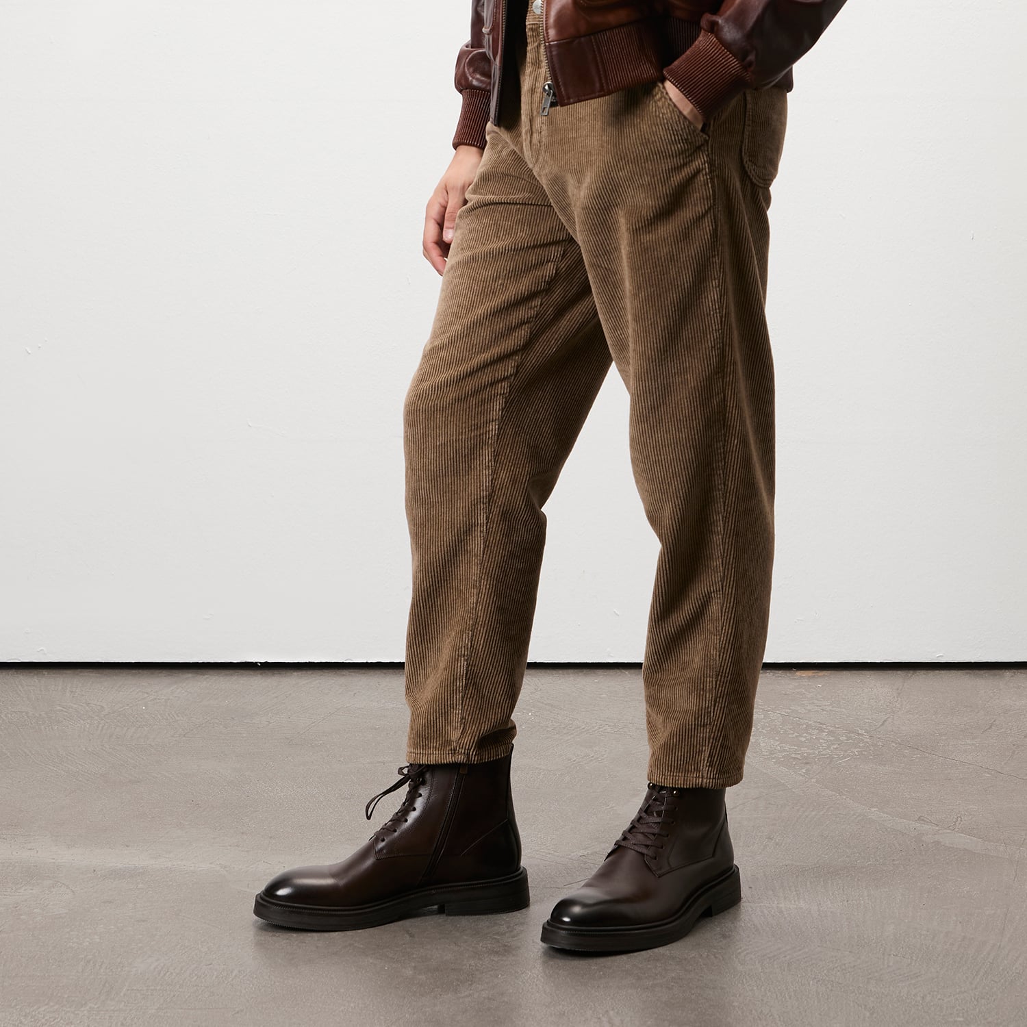 %100 deri, deri iç tabanlı, deri astarlı, eva tabanlı, zımba detaylı, bağcıklı erkek bot.