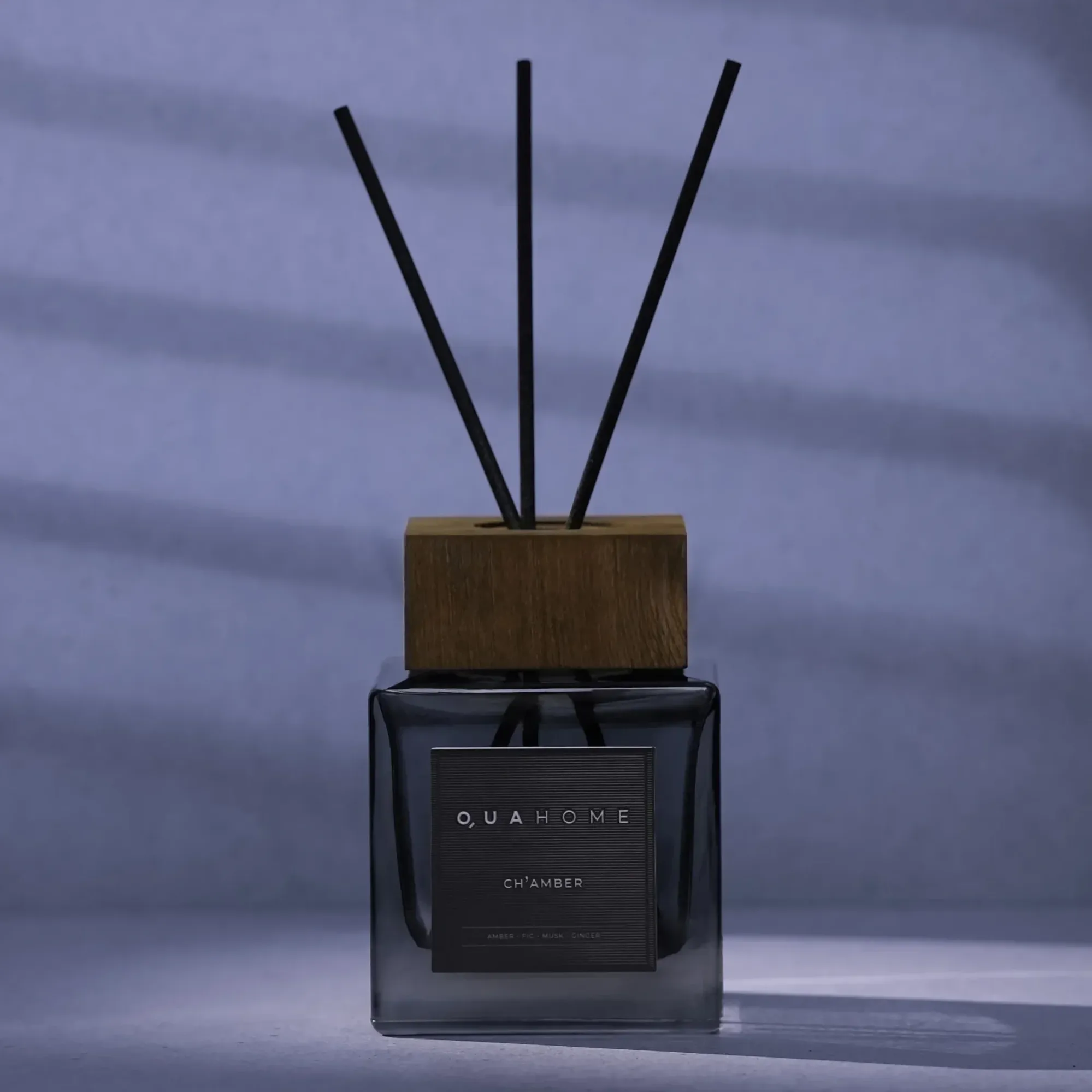 Ch'amber Koleksiyonu, cam şişelerde sunulan kehribar, incir, misk ve zencefilin büyüleyici birleşimiyle yaşam alanlarınıza sıcak ve sofistike bir atmosfer katıyor. Her notasında zarafeti hissedin.