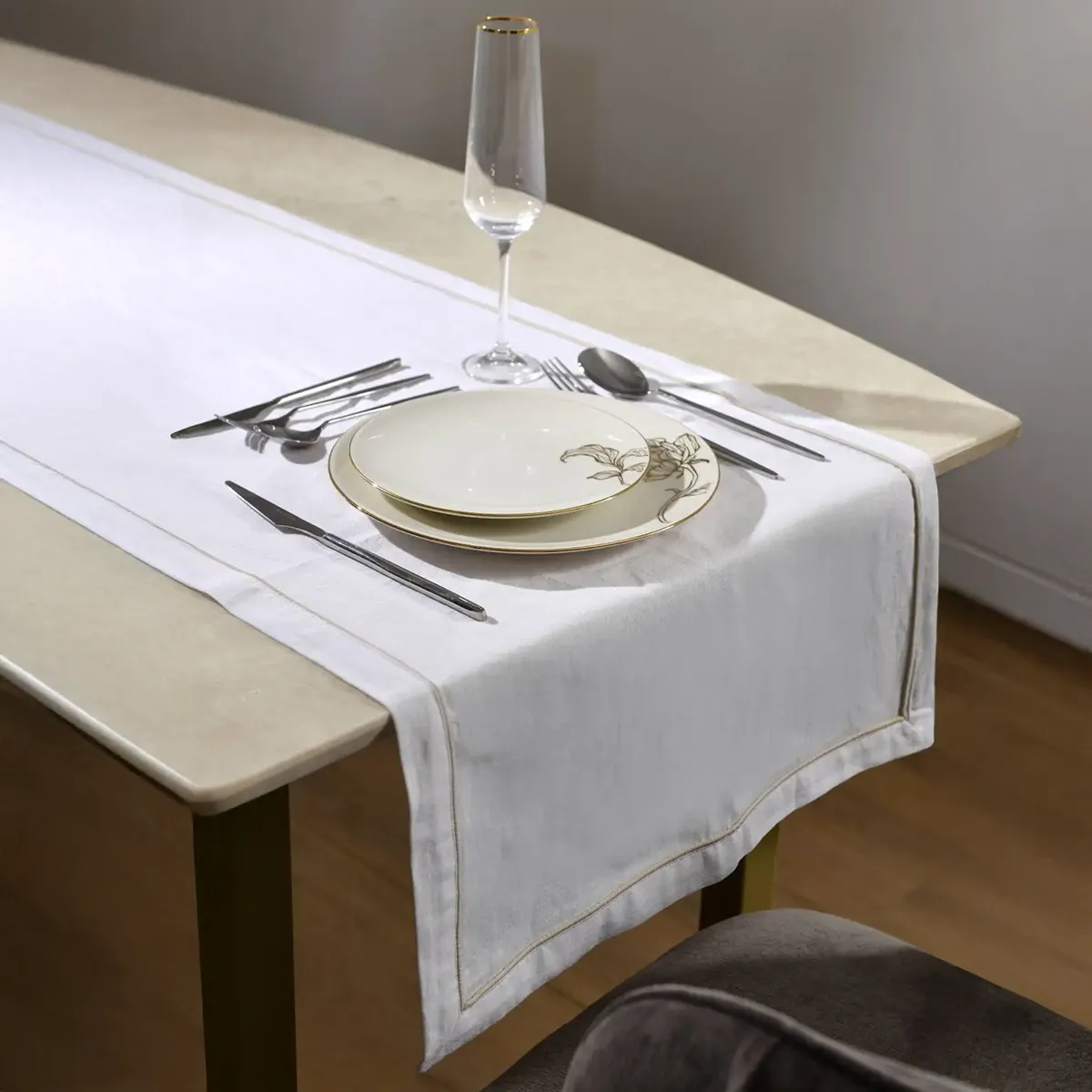 Qua Home Lucca Pamuk Keten Biyeli Runner Beyaz 45x150 cm