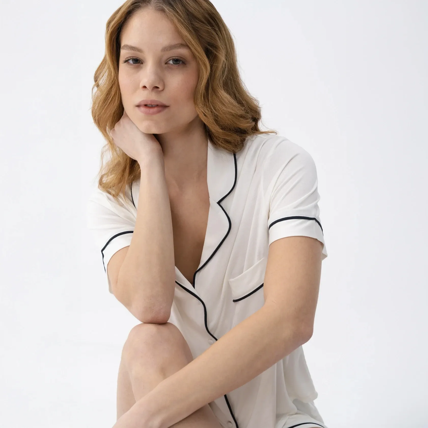 Qua Home Sia Kadın Modal Suprem Biyeli Kısa Kol Gömlek Ekru