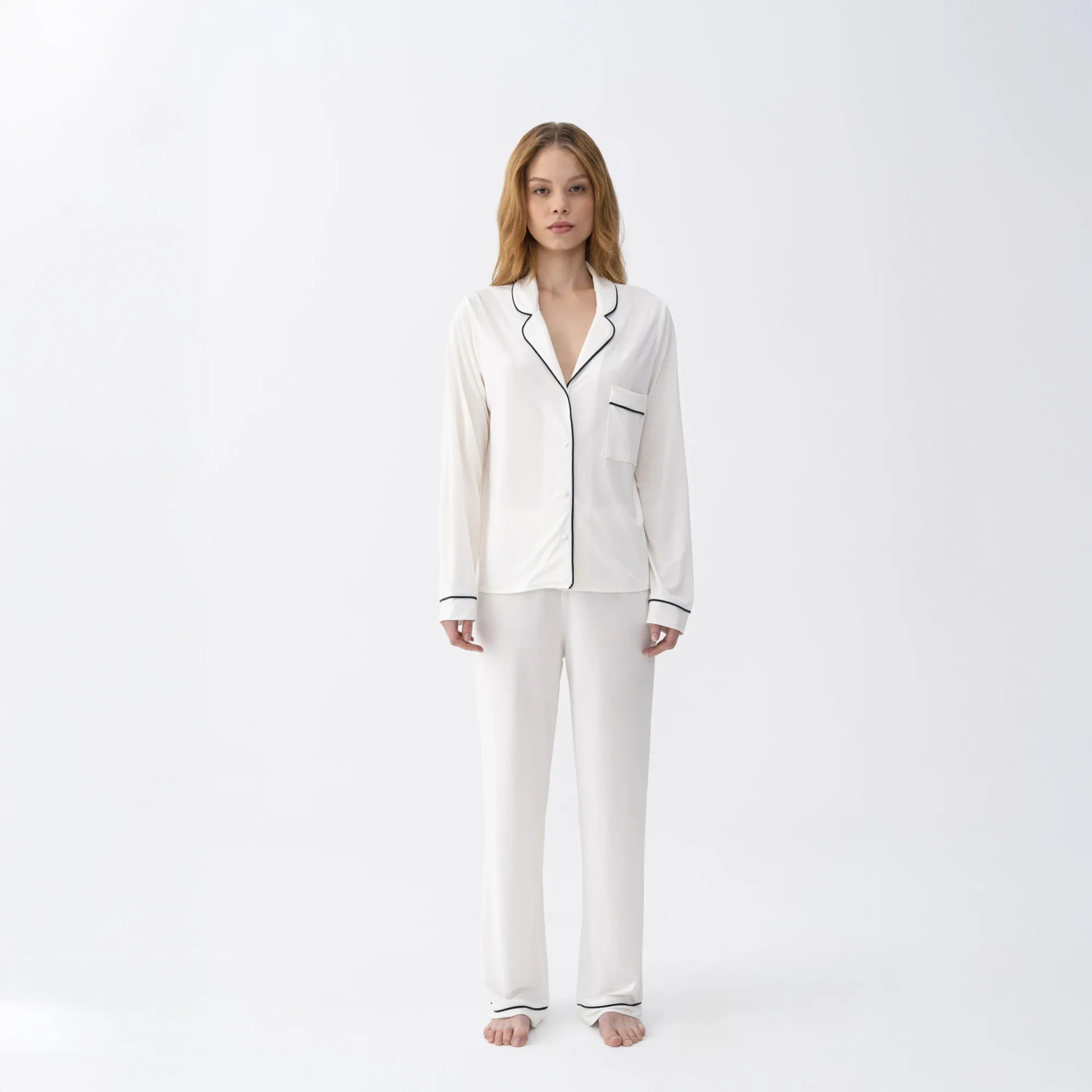 Qua Home Sia Kadın Modal Suprem Biyeli Pantolon Pijama Ekru