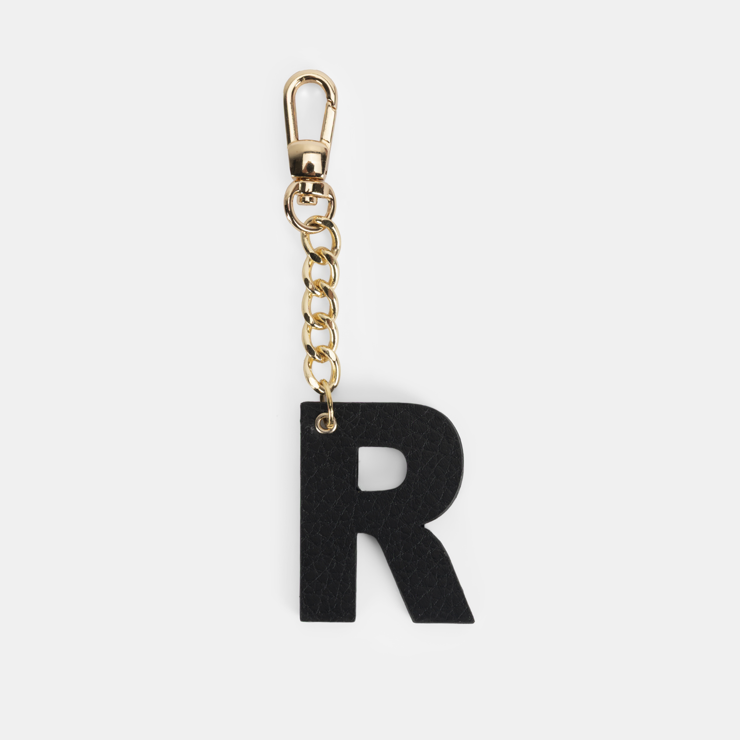 R Harfi Hakiki Deri Siyah Anahtarlık