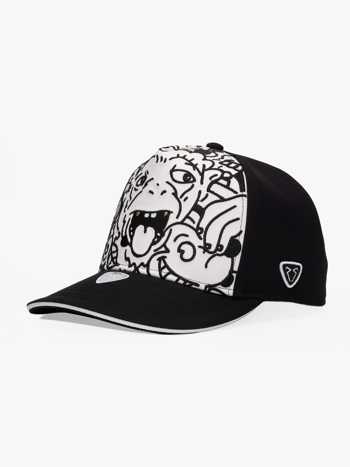 RustandRich Kadın Erkek Siyah/Beyaz Baseball Şapka-Curved Visor-Art Collection-Doodle Monkey