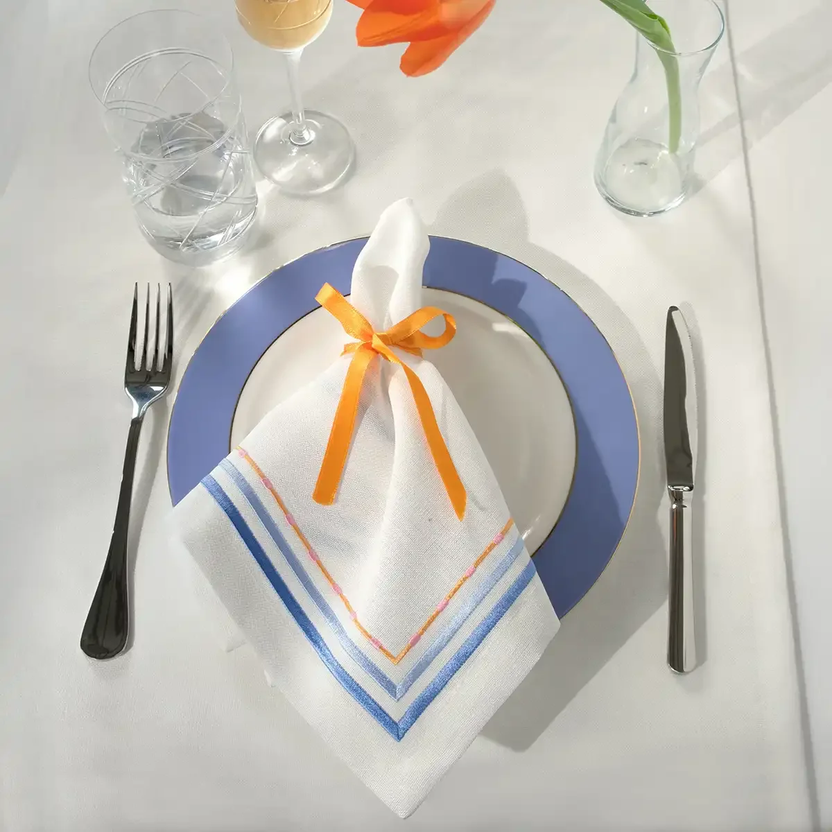Sahara 2'li Peçete, beyaz ve mavi tonlarının şık uyumuyla sofralarınıza zarif bir dokunuş katıyor. Yumuşak ve dayanıklı kumaşı sayesinde hem günlük kullanıma hem de özel davetlere uyum sağlayarak şıklığı ve fonksiyonelliği bir araya getiriyor.