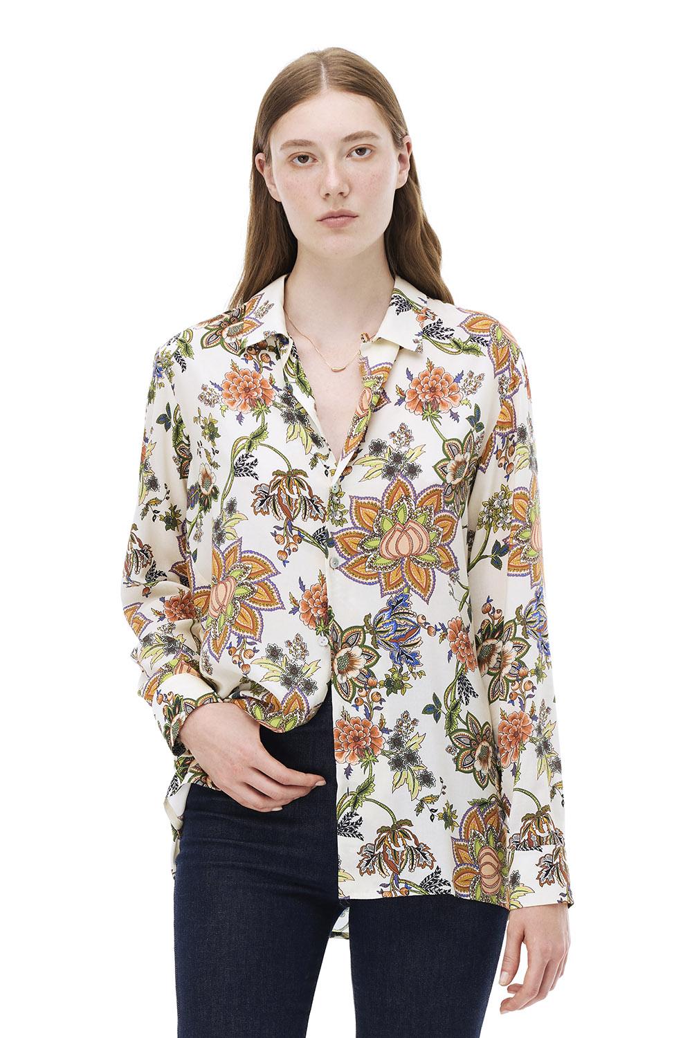 Sahras Rahat Kalıp Çiçek Desen Standart Boy Düşük Kollu Gömlek Yaka Çok Renkli Gömlek