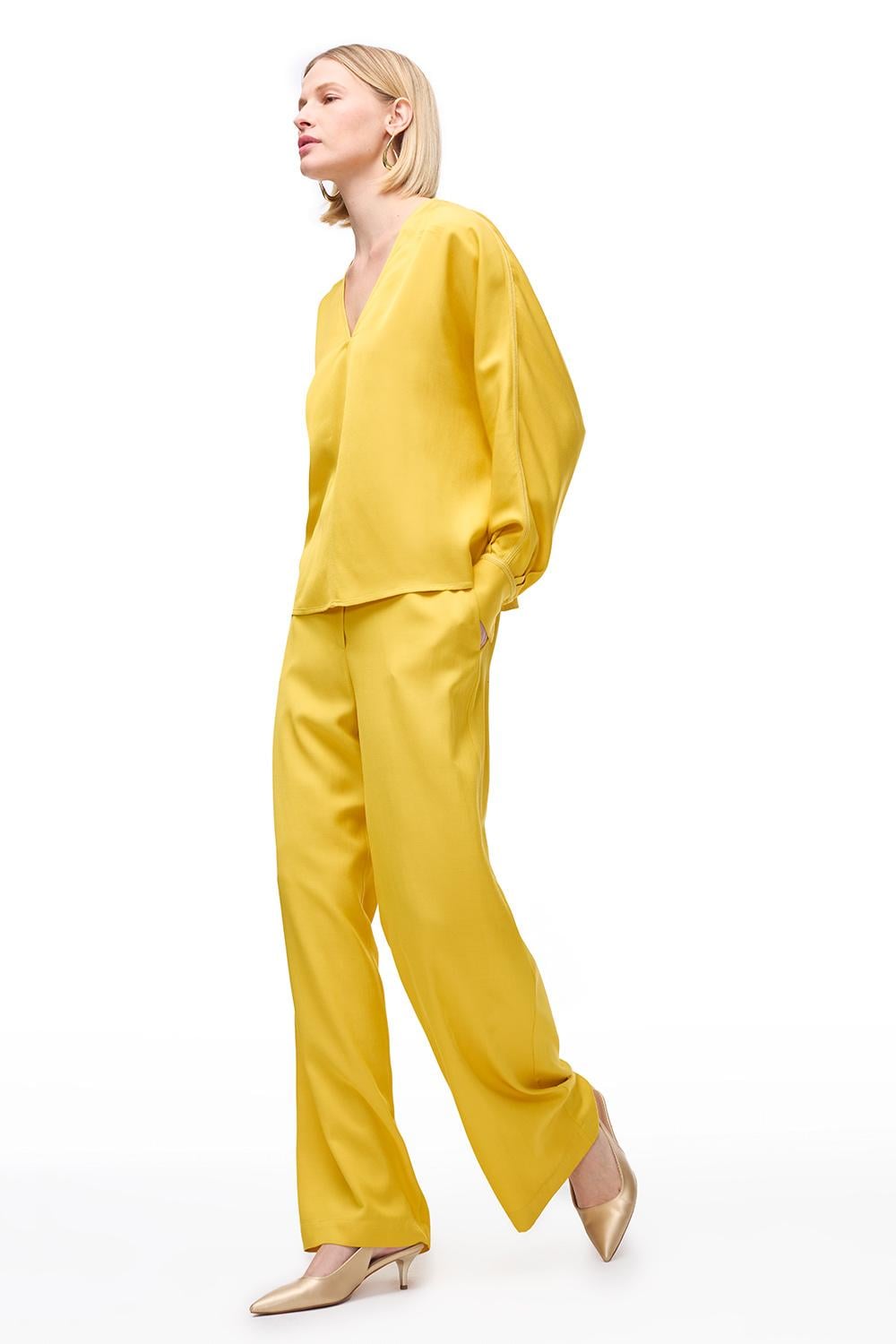 Sarı Favors Rahat Kalıp Yüksek Bel Pantolon