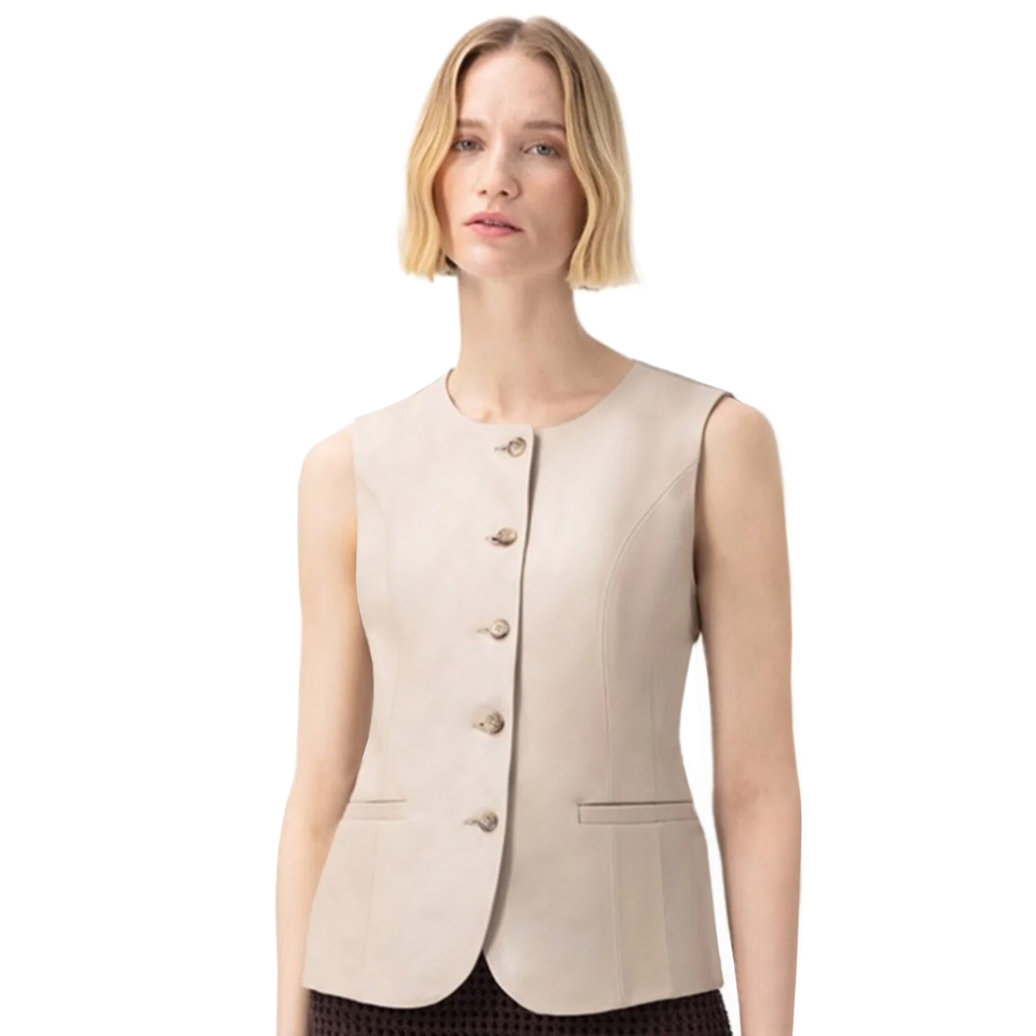 Siena Bej Kadın Deri Keten Yelek/Bluz