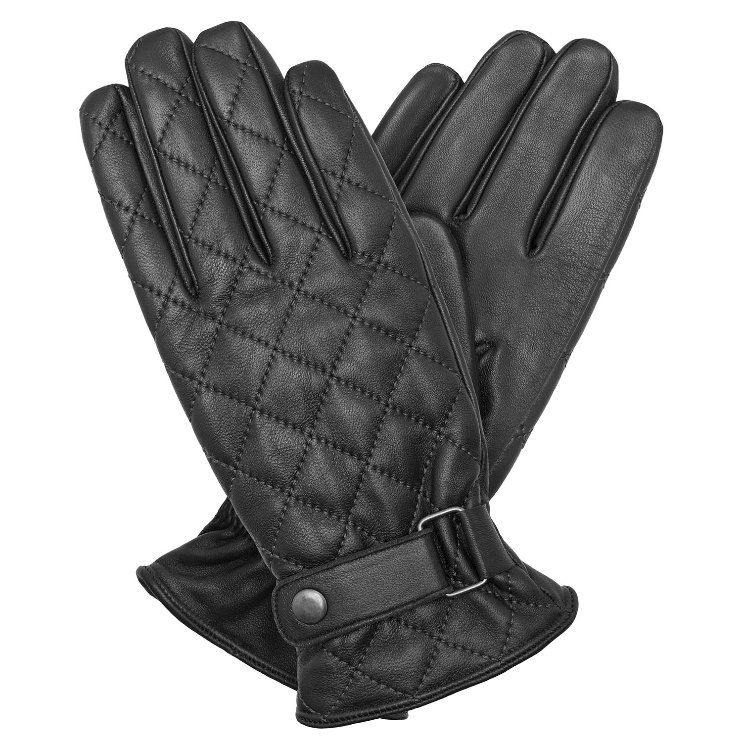 Kapitone desenli, tokalı deri eldiven.