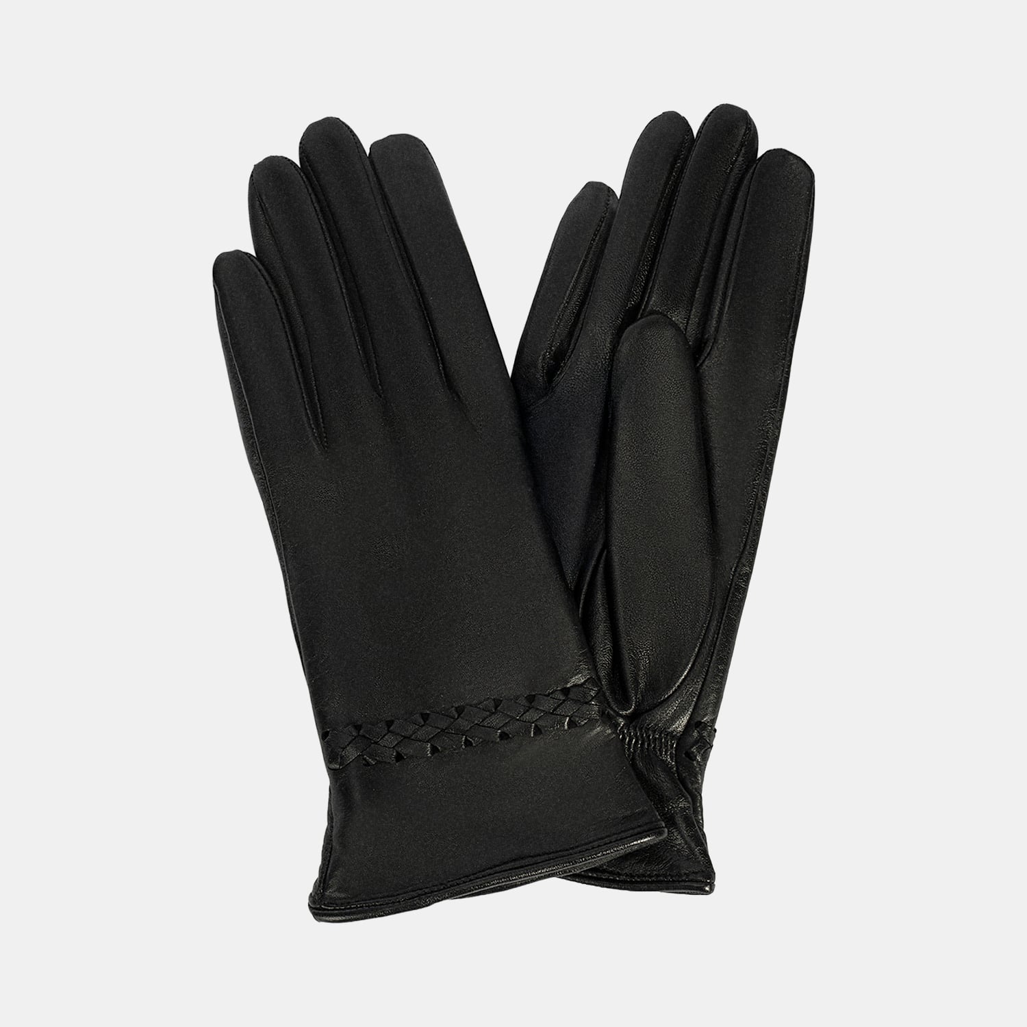 Siyah Kadın Örgülü Deri Eldiven