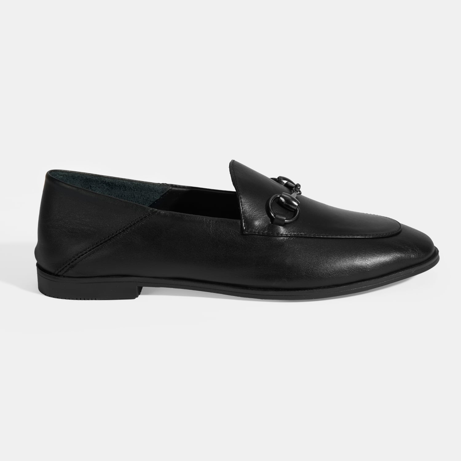 Siyah Kadın Toka Aksesuarlı Deri Loafer