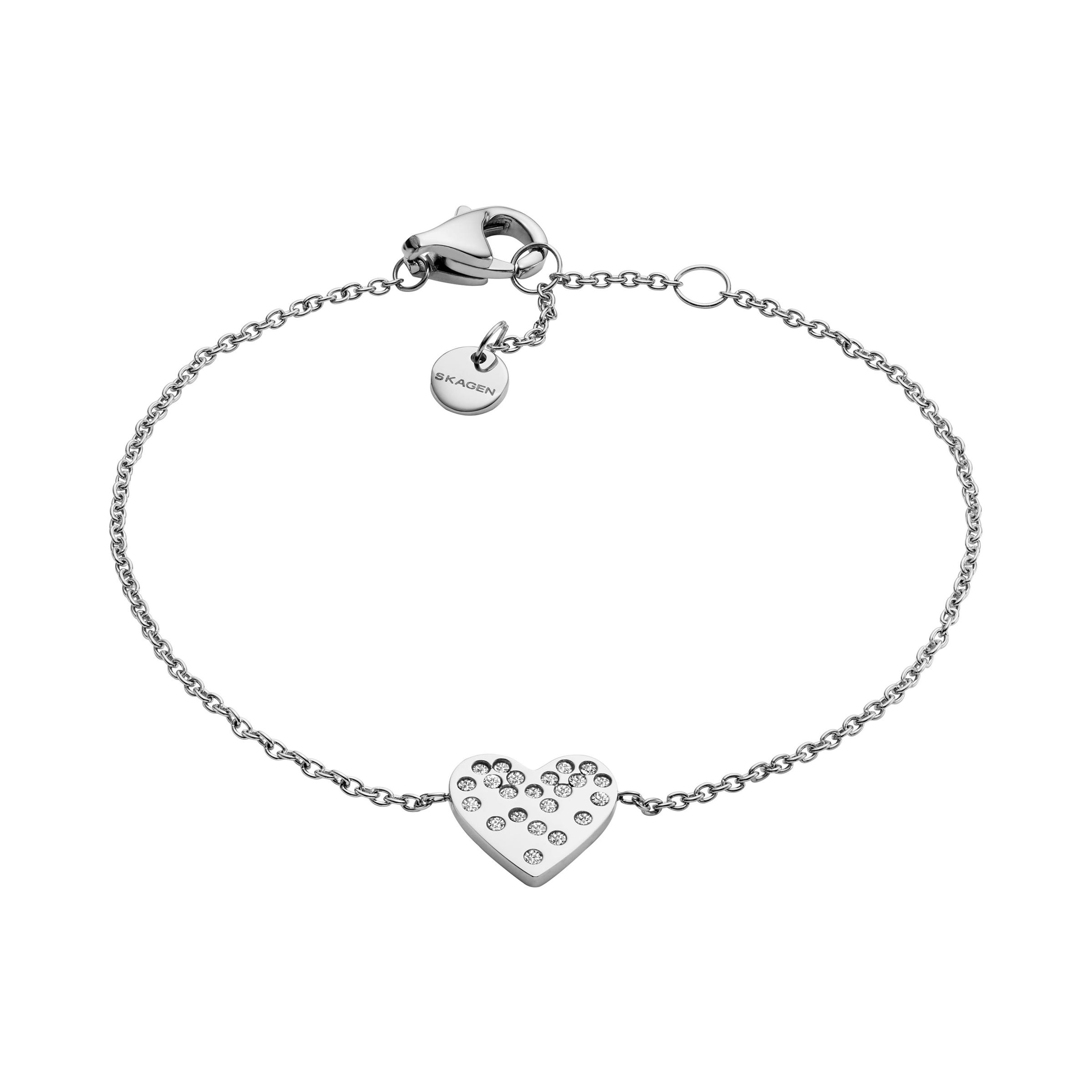 Metalik Gri Renk / Çelik Materyal / Taşlı / Kalp Takı Şekli / Bileklik