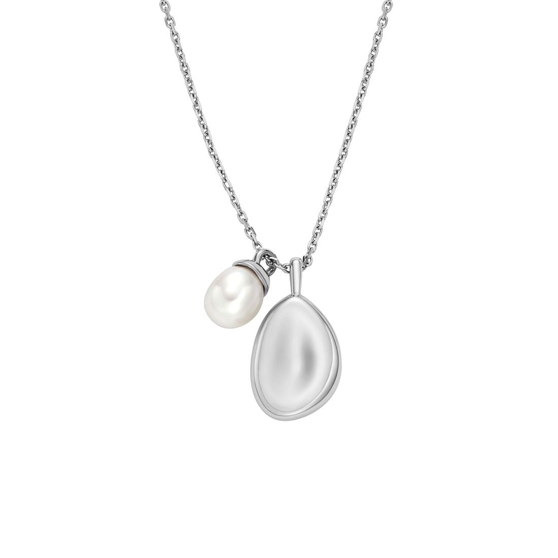 Metalik Gri Renk / Çelik Materyal / İnci / İnci Takı Şekli / Kolye