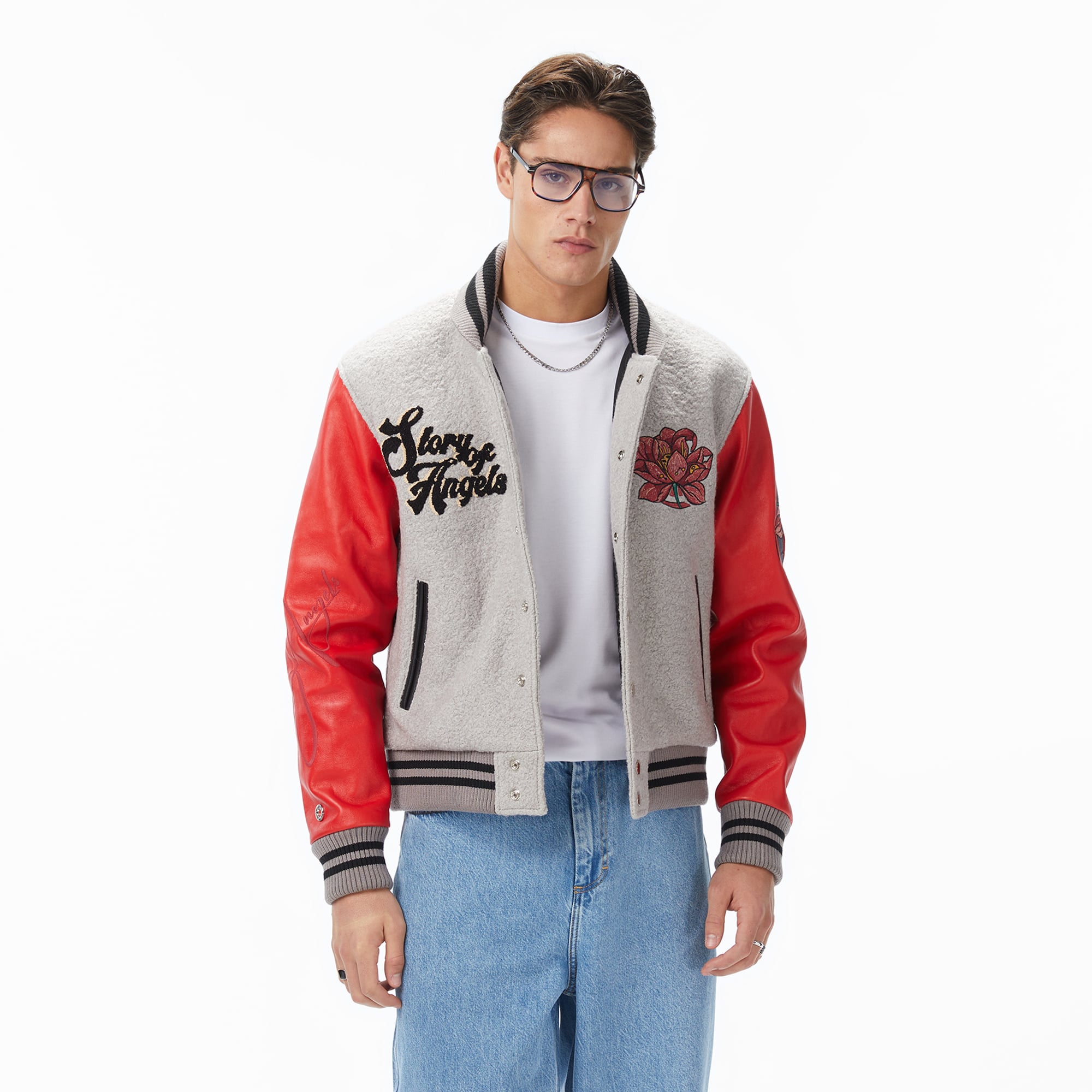 Story Of Angels Surrender Your Soul Leather&Wool College Erkek Gri/Kırmızı Ceket