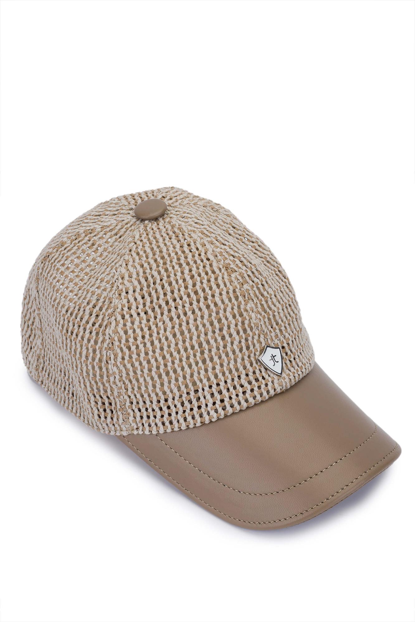 Tamer Tanca Erkek Deri & Tekstil Bej Hasır Beyzbol Şapka