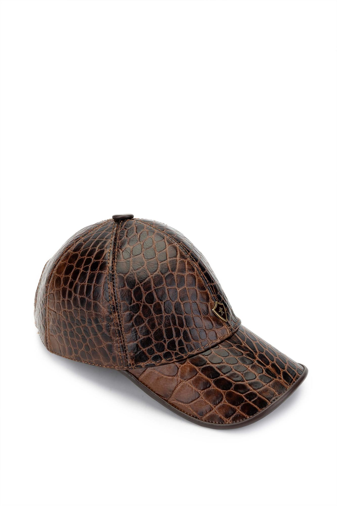 Tamer Tanca Erkek Hakiki Deri Kahverengi Kroko Beyzbol Şapka