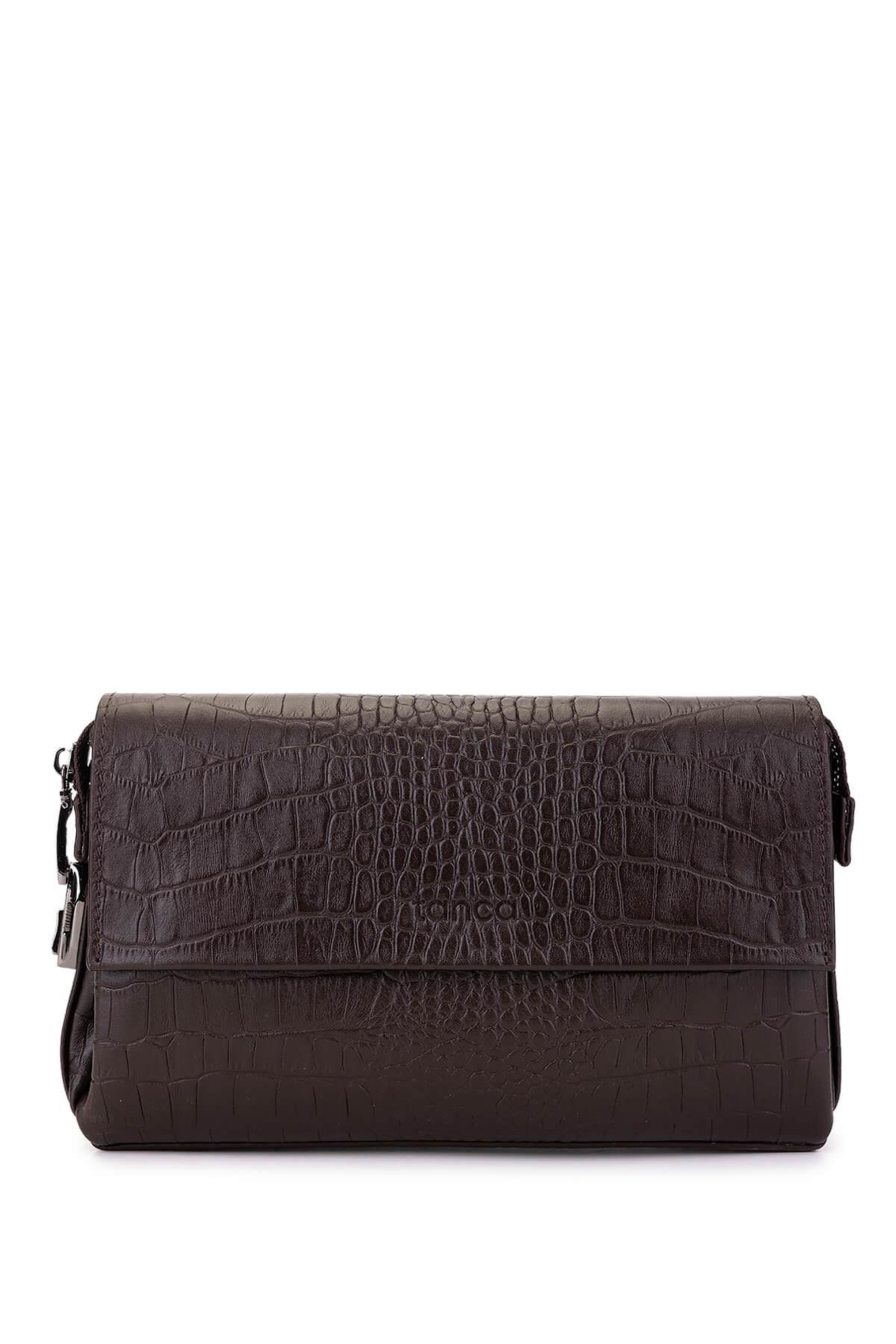 Tamer Tanca Erkek Hakiki Deri Kahverengi Kroko El Çantası