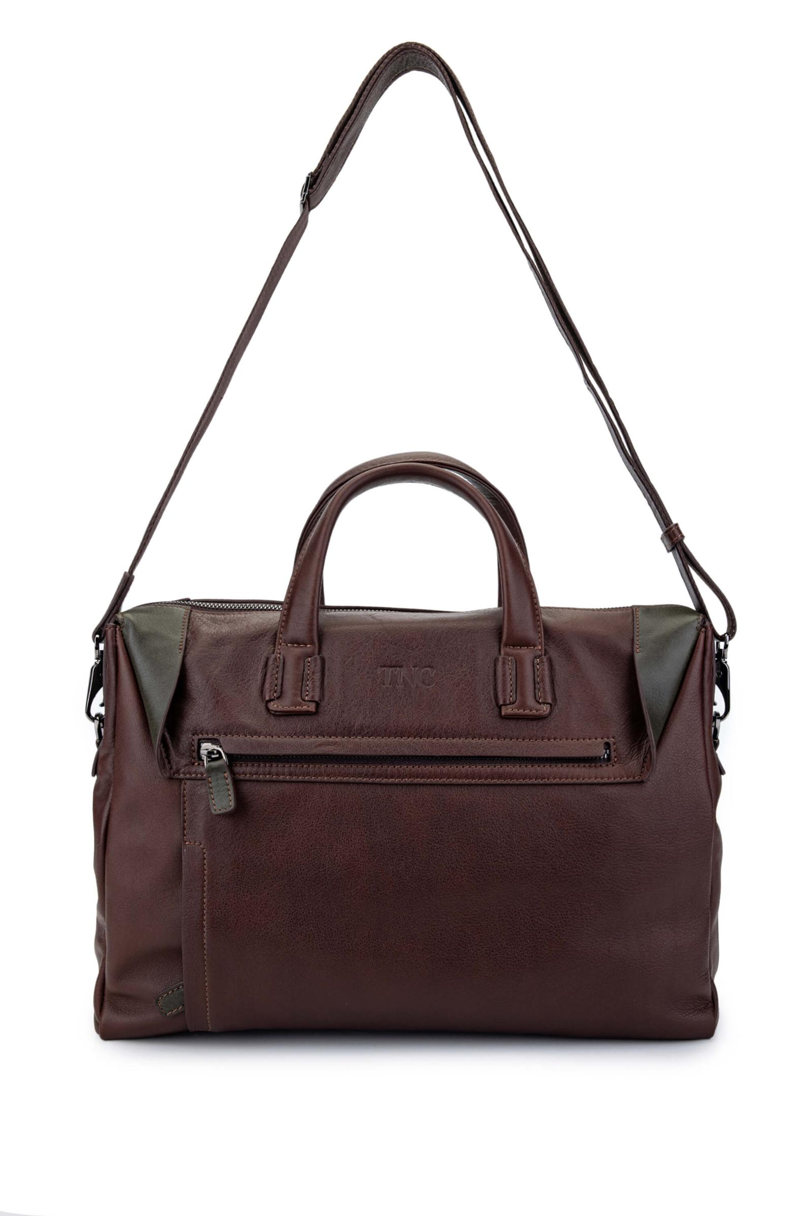 Tamer Tanca Erkek Hakiki Deri Kestane/Yeşil Evrak Çantası