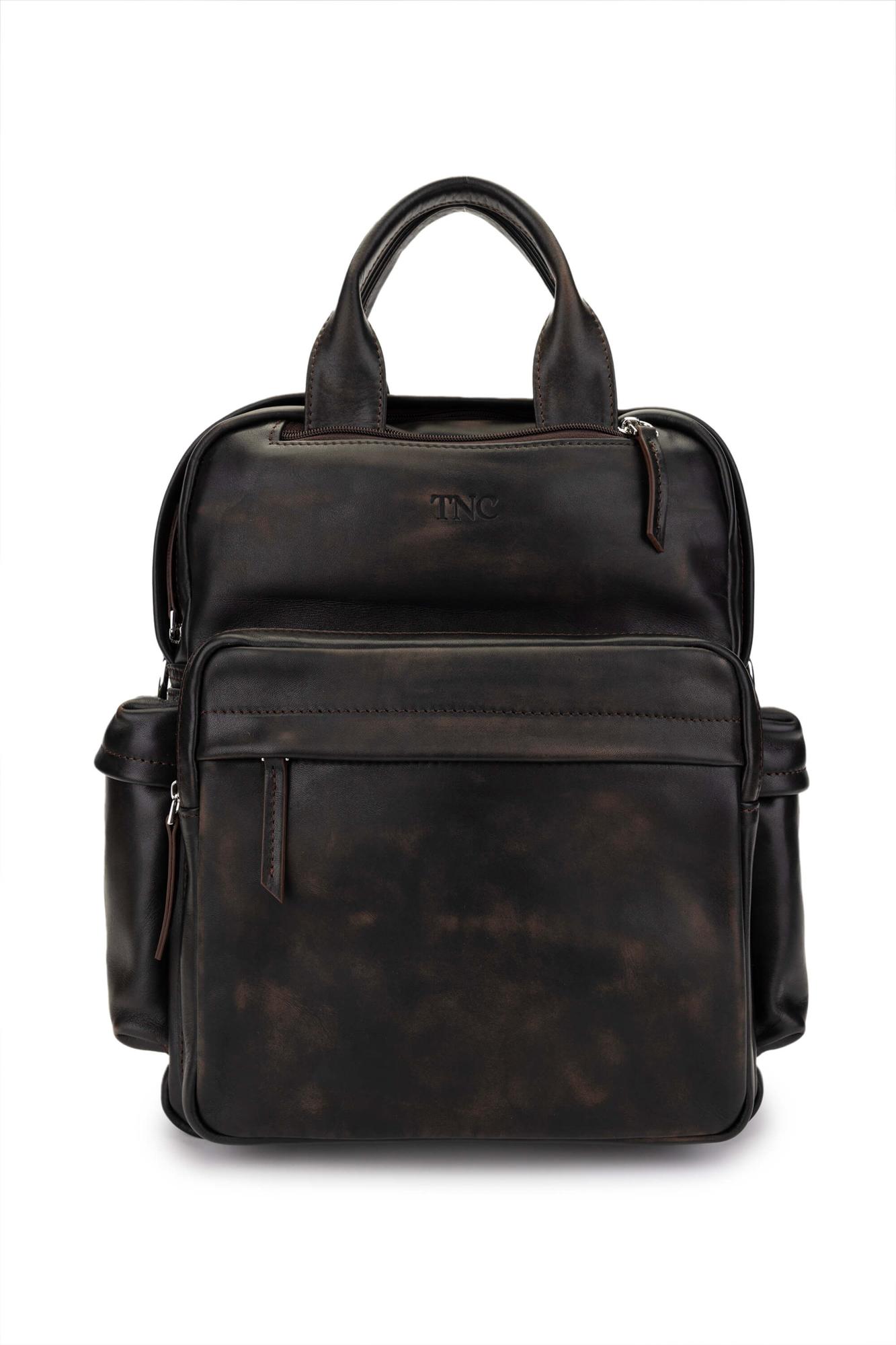 Tamer Tanca Erkek Hakiki Deri Kızıl Eskitme Sırt Çantası