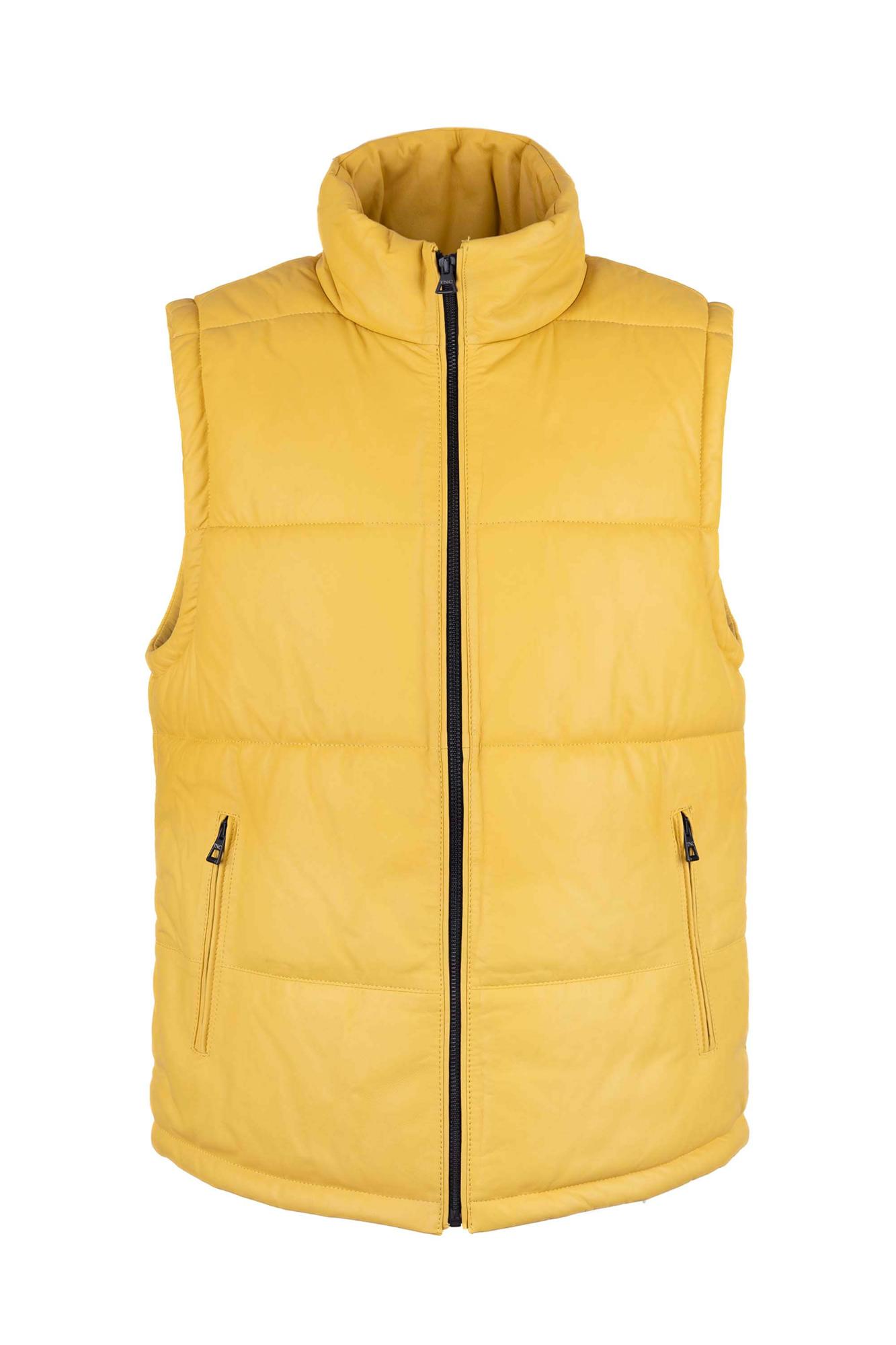 Tamer Tanca Erkek Hakiki Deri Sarı Yelek Deri Mont