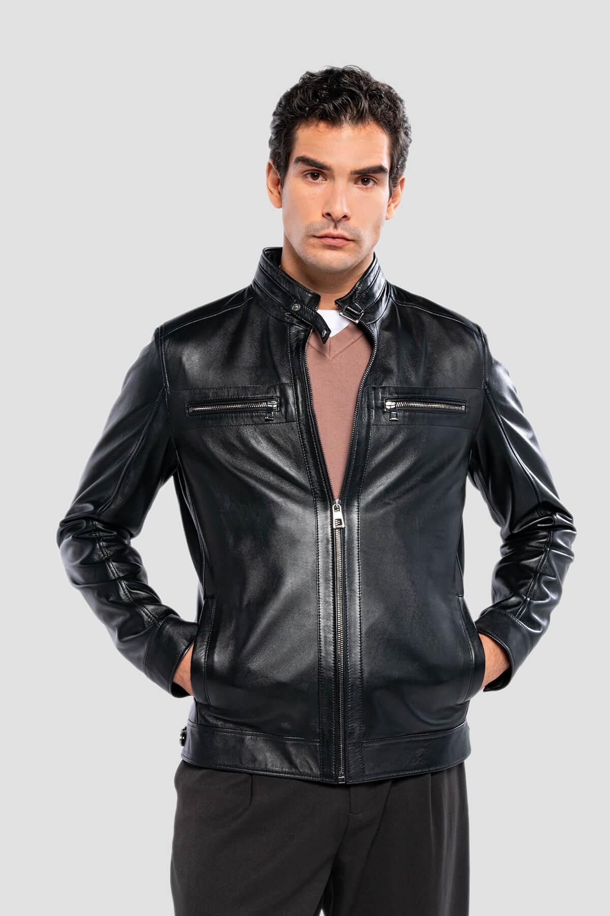 Tamer Tanca Erkek Hakiki Deri Siyah Deri Deri Mont
